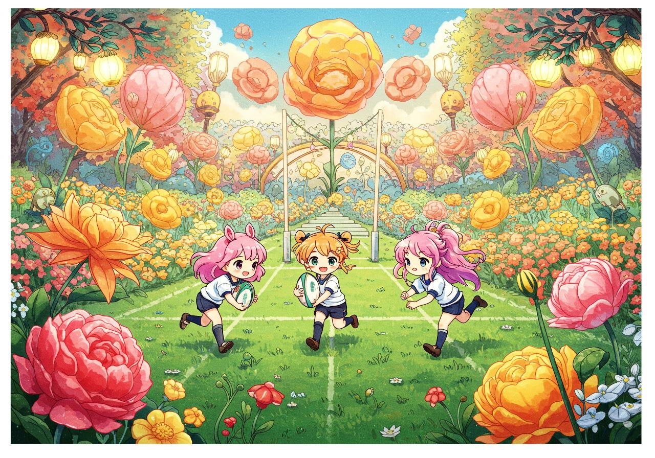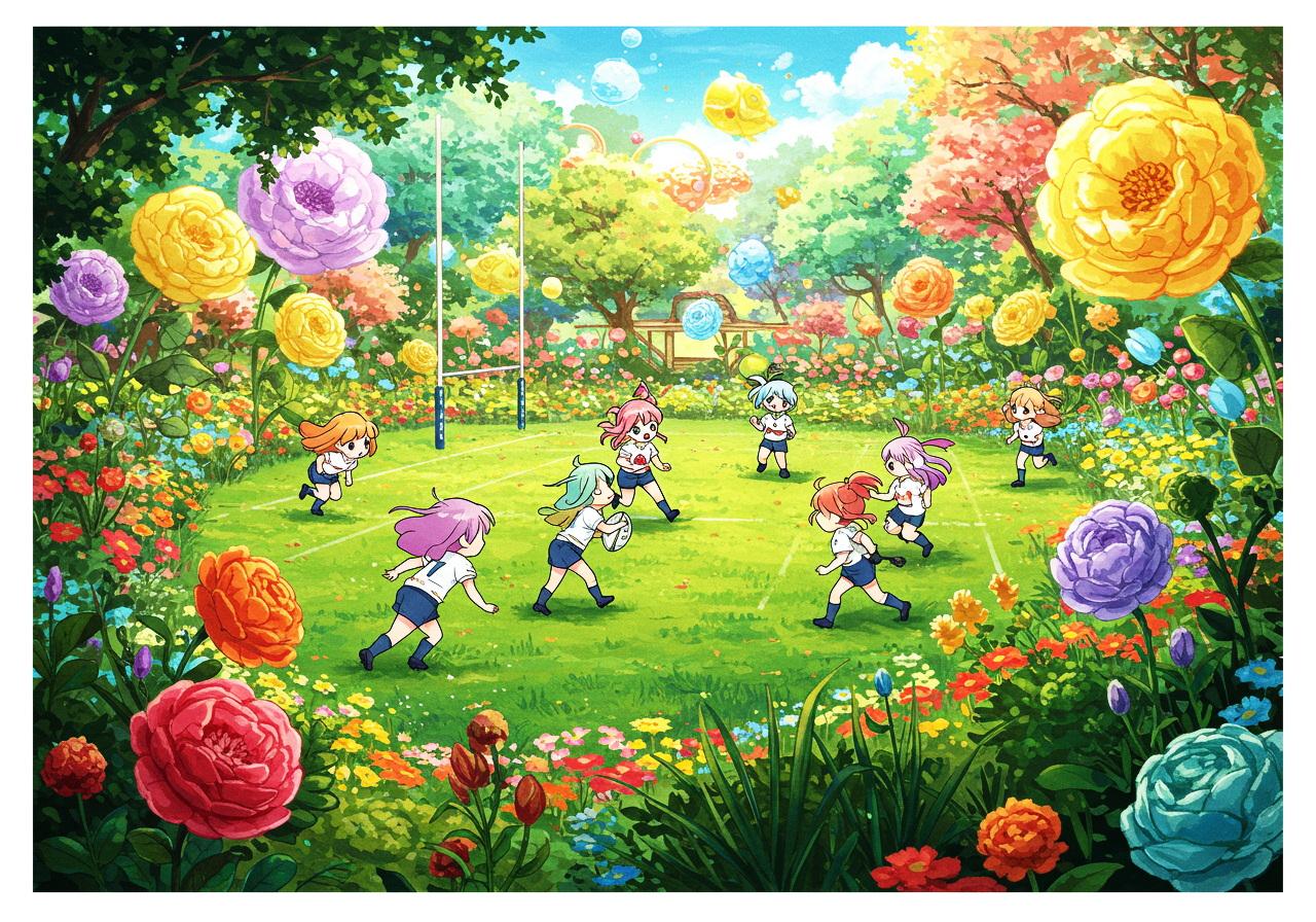 花園ラグビー場に花が咲き乱れてはいません。(周りの公園には咲いています)
