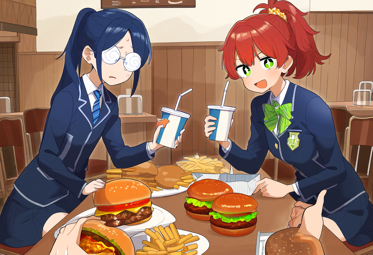 霧華「やっぱりここのハンバーガーは美味しいねッ☆二人共遠慮しないで沢山食べてね!」