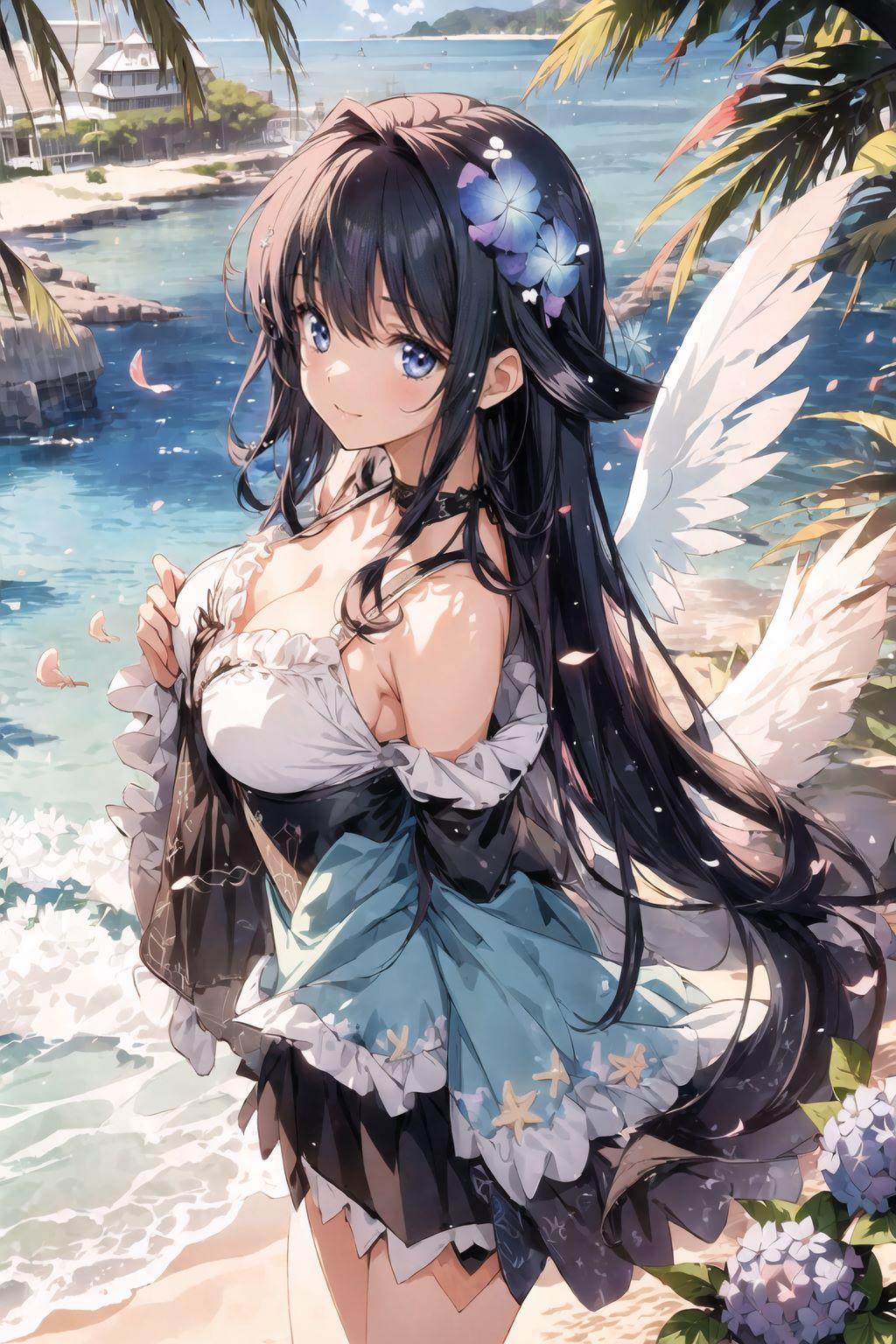 海とアジサイと天使さん