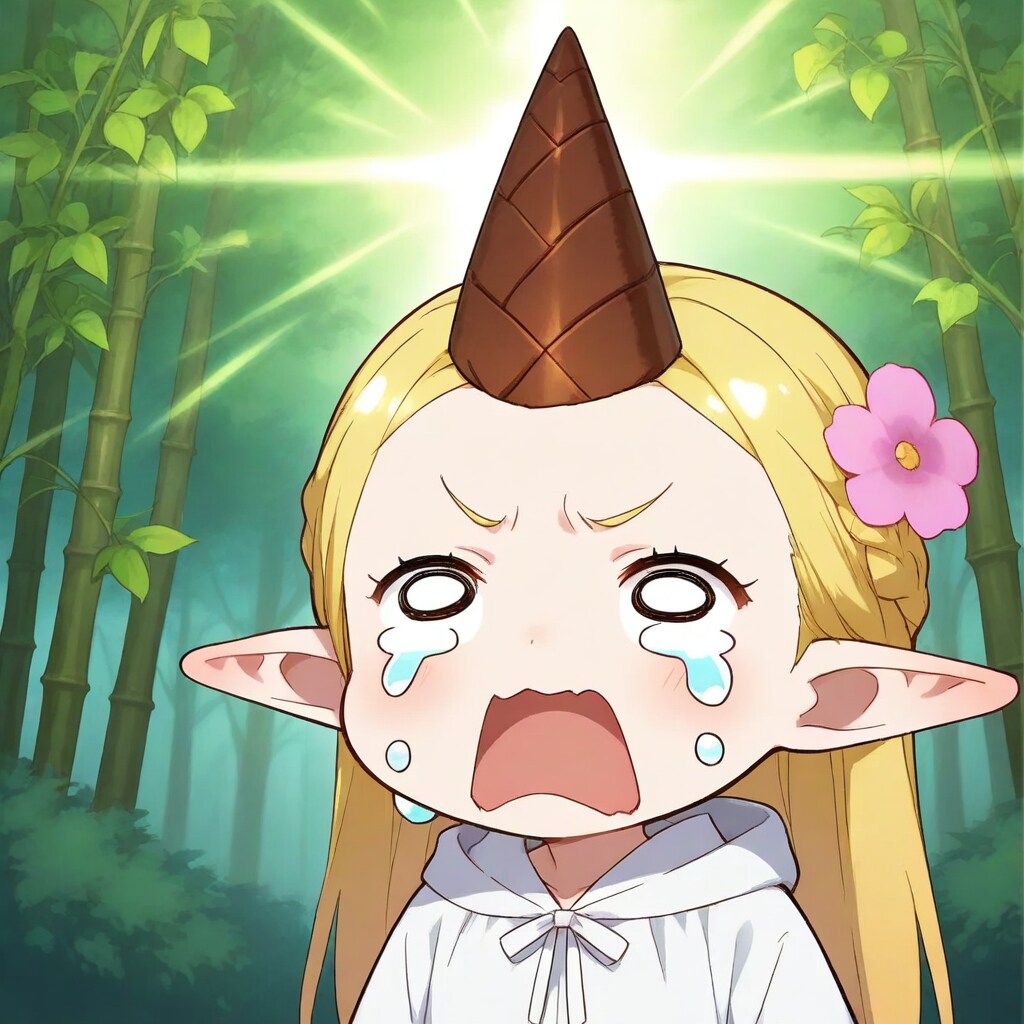 1枚目突然光り出した筍にアワアワと泣くエルフ