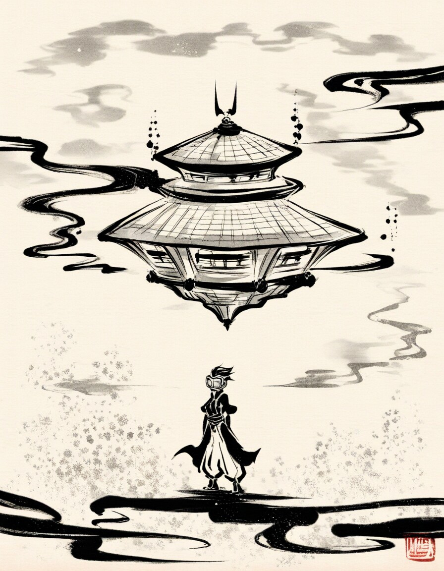 ある日、一人の絵かきがその不思議な姿を絵に残そうと、水墨画を描きました。
