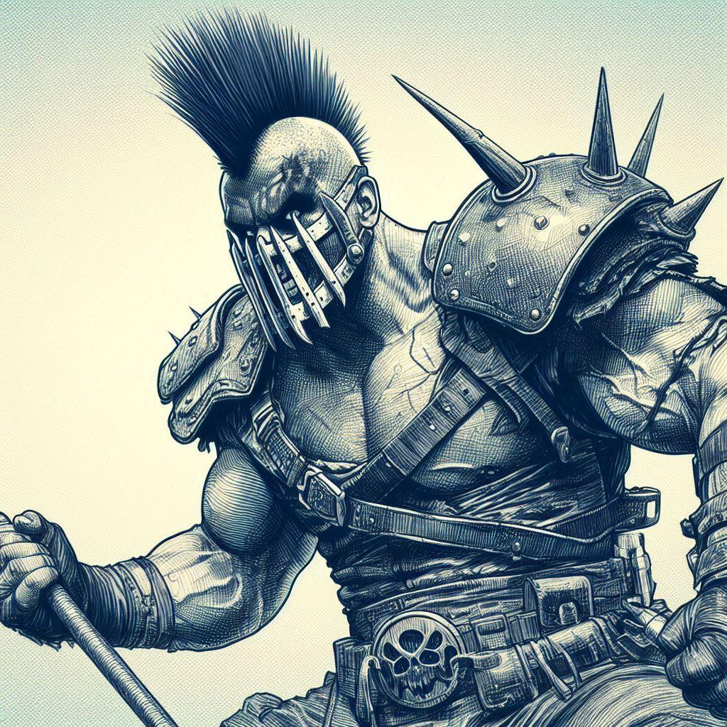 イラストになっても、Dalleが惚れ惚れする肉体美のマッチョ系イケメン?モヒカンに仕上げてくれました😆♪。