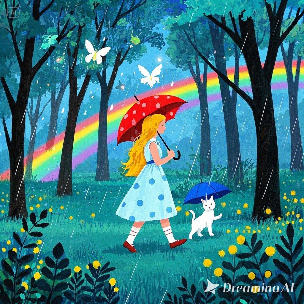 「虹の森のしずく姫」 ― 雨が降るたび、森に現れる少女と白猫のふしぎな旅 ―