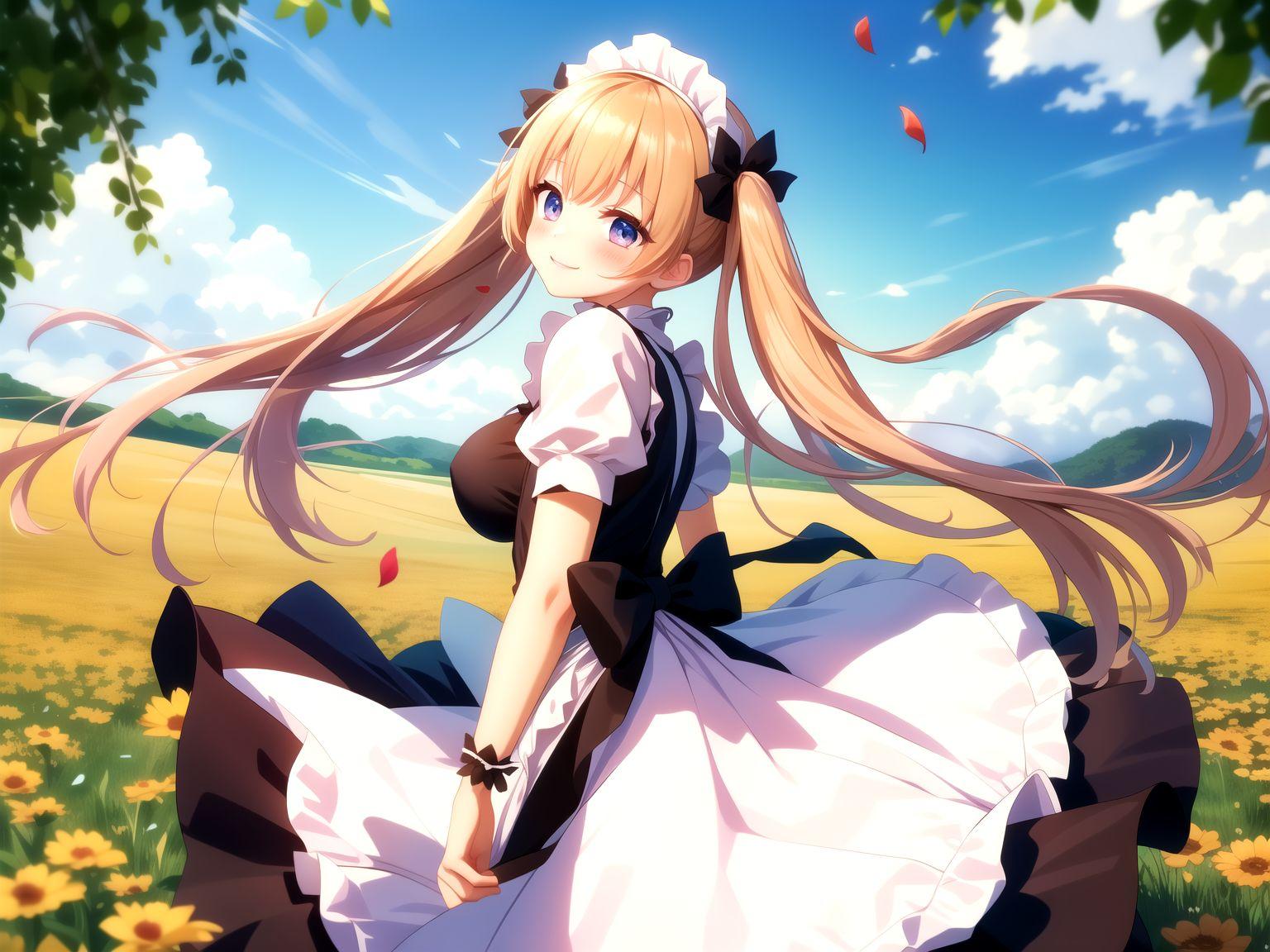 スカートを翻して振り向くメイドさん。