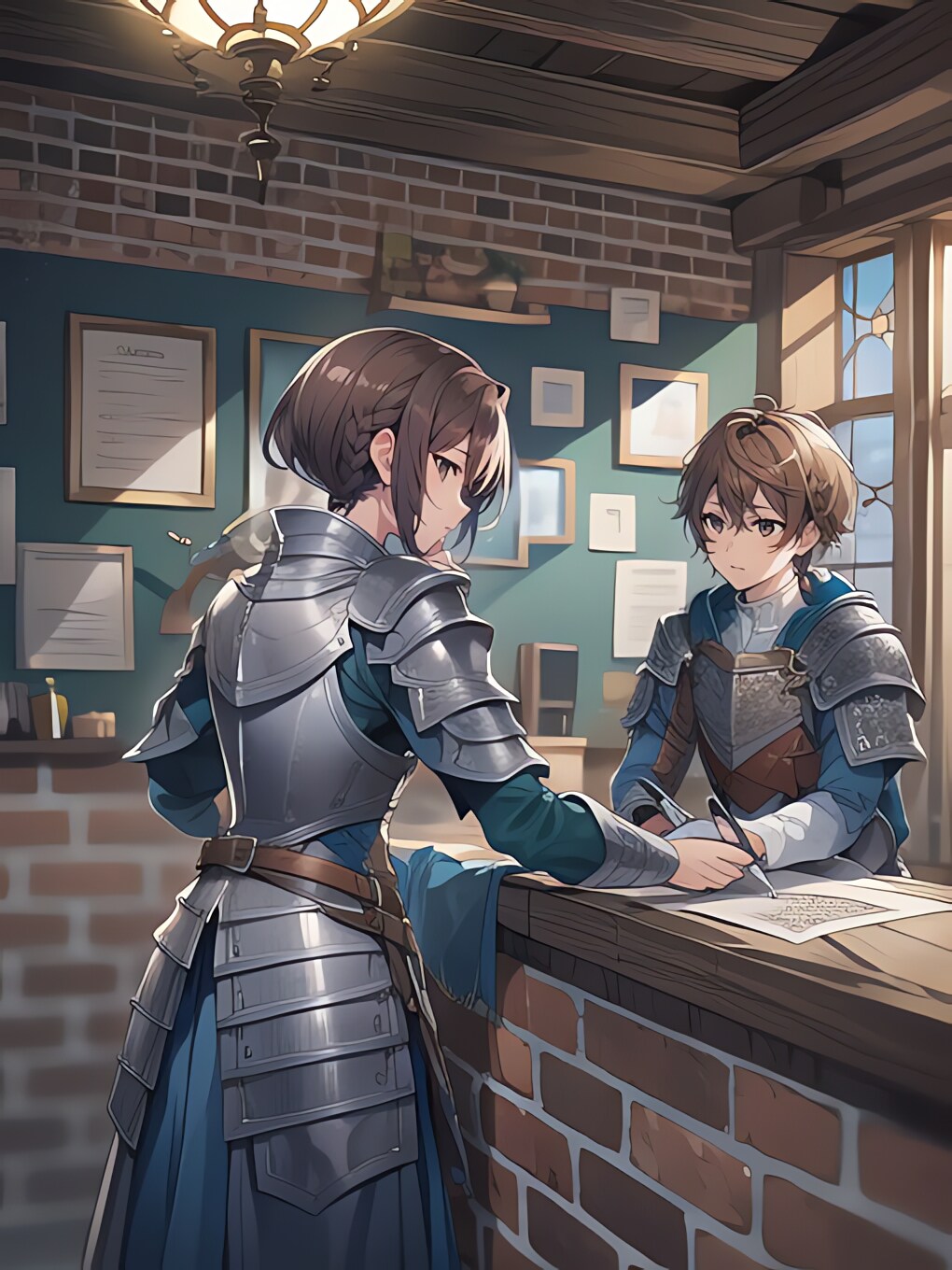 2枚目がギルドで受付してる感じにしよとしたら、作戦会議してる感じになってしまいました。