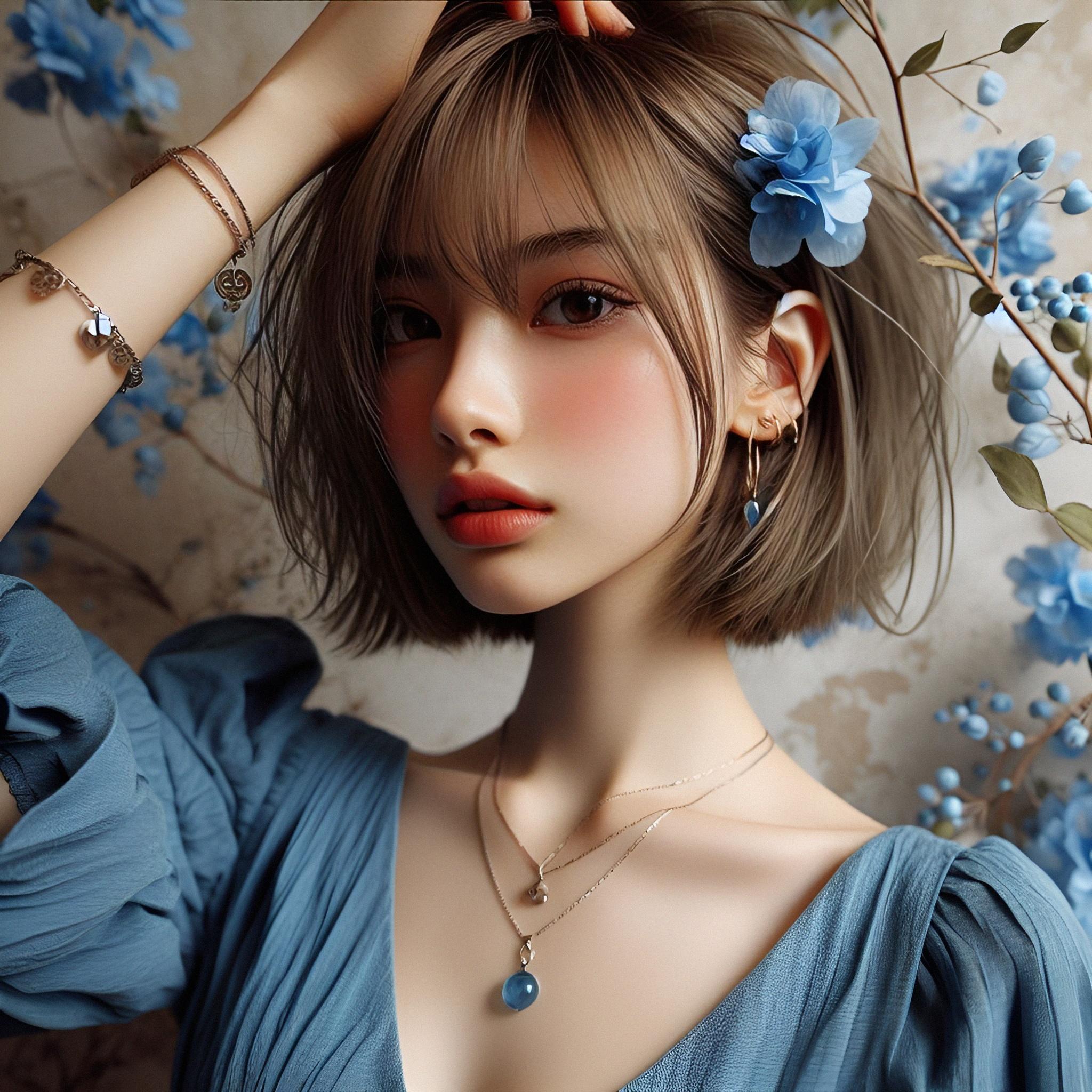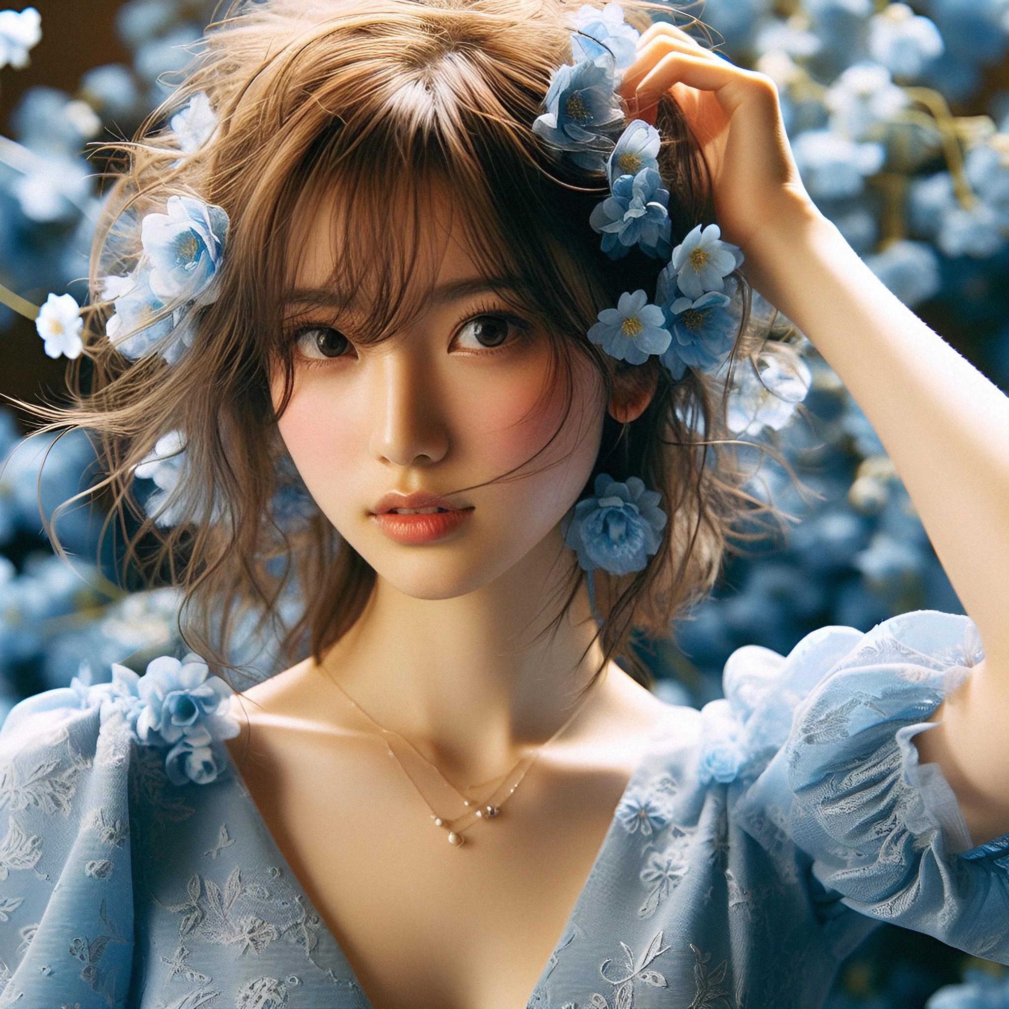 短い髪には青い花がよく映える