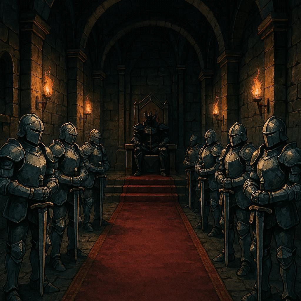 動かぬ鎧たちが目を覚まし、王の命令を待っている。