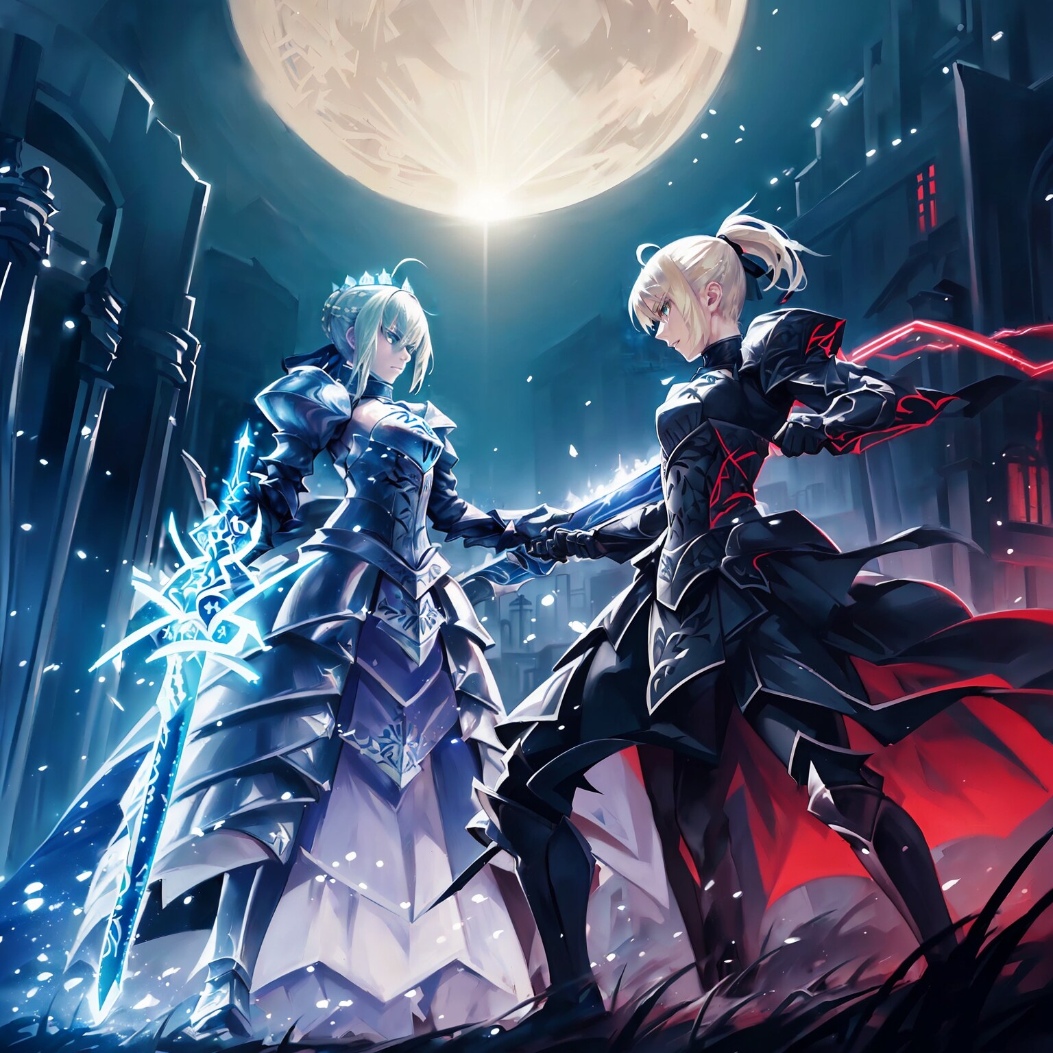 Blade Clash:セイバー風美少女の激しい対決のAIバトルシーン