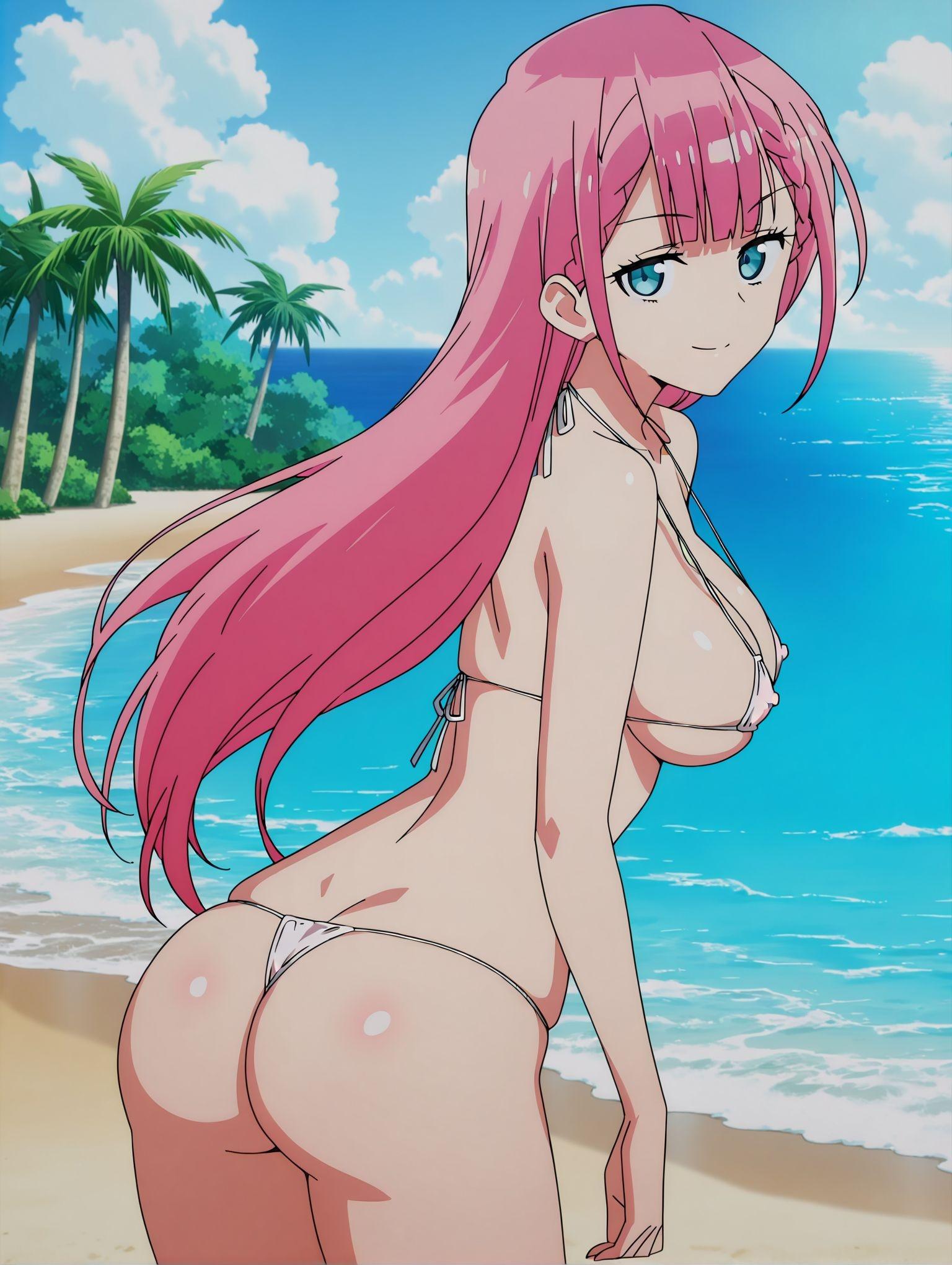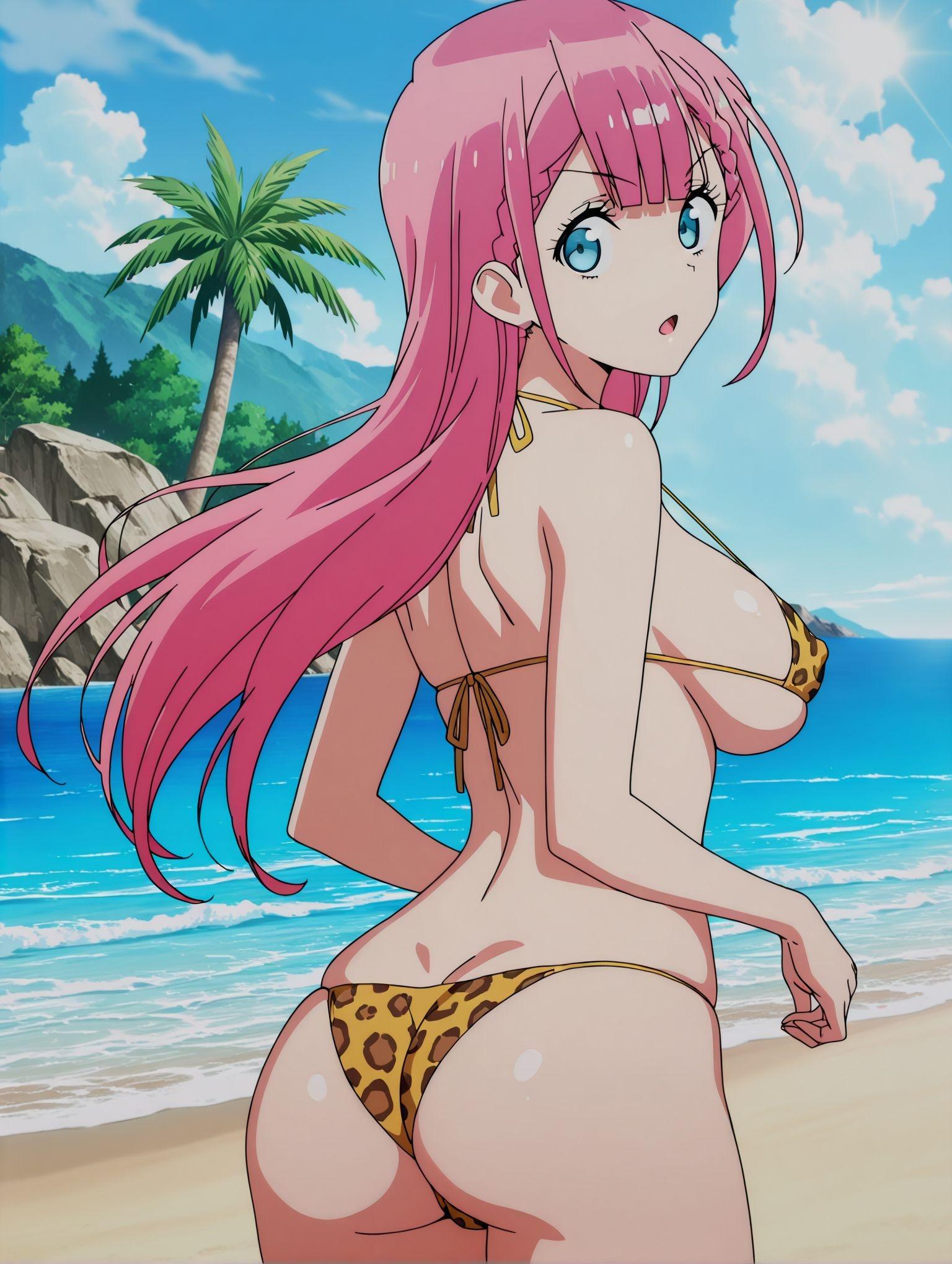 ヒョウ柄、ゴールド、シルバーという、もはやAVでしか見かけない柄のマイクロビキニを着せてみましたw