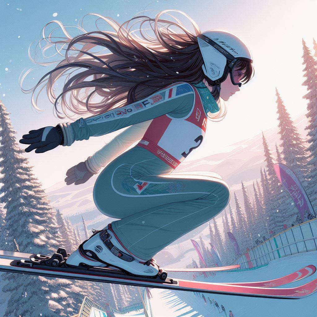 どうにかタイトルと合わせれば、「スキージャンプをしている」と何とか伝わりそうなイラストがようやくできました・・・