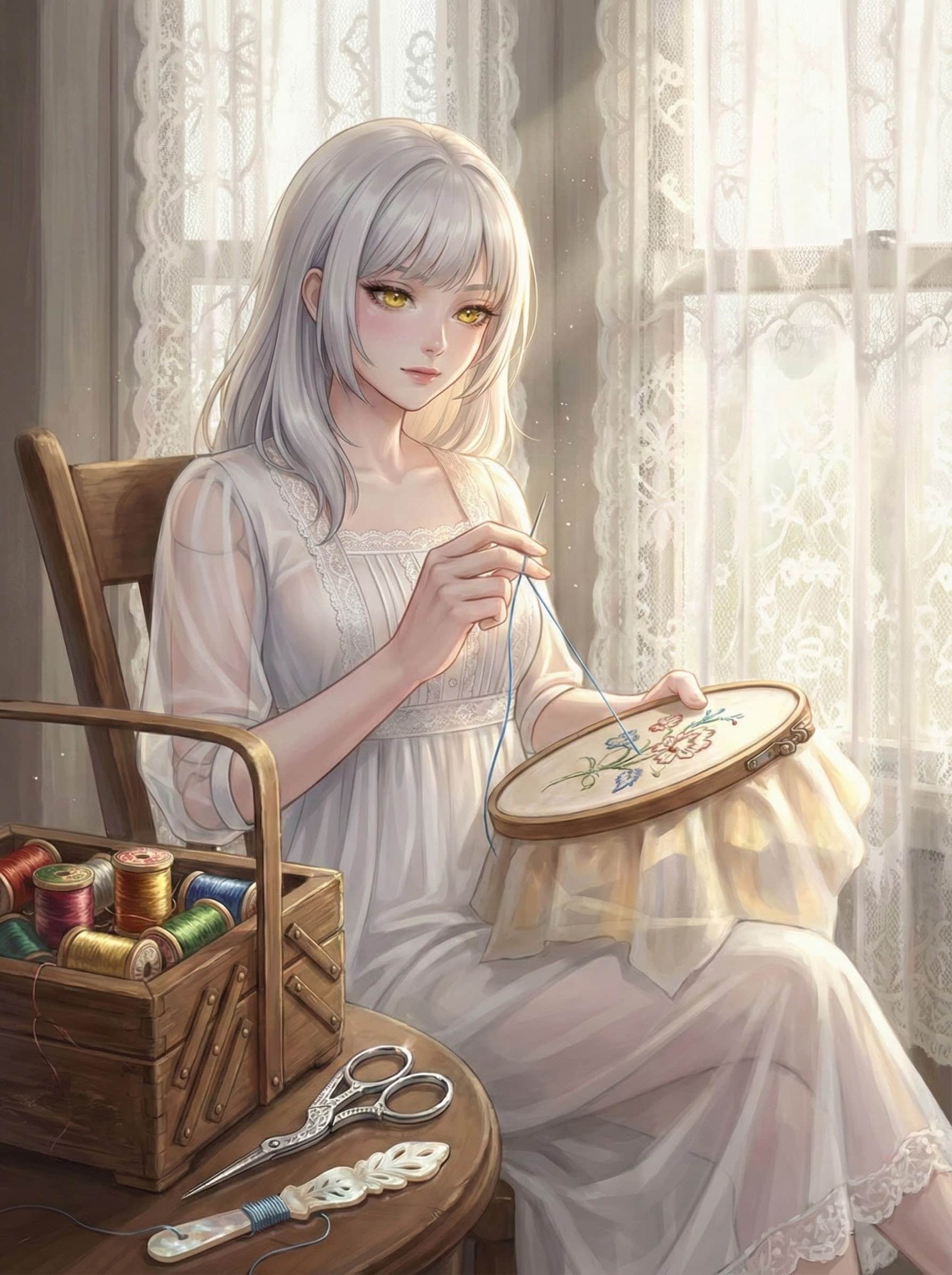 『 窓辺の針仕事 』 - The Windowside Embroidery
