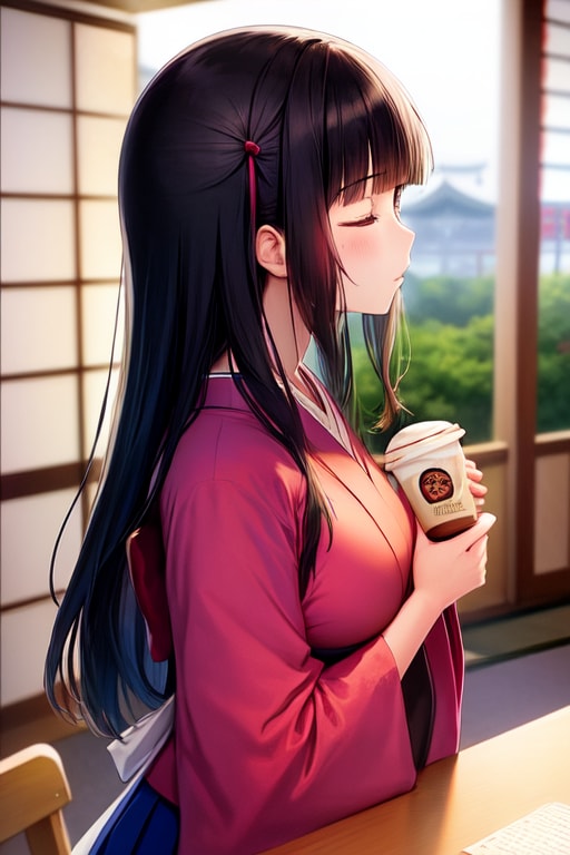 お茶を飲む姿をイメージで生成してみました!(*'▽')