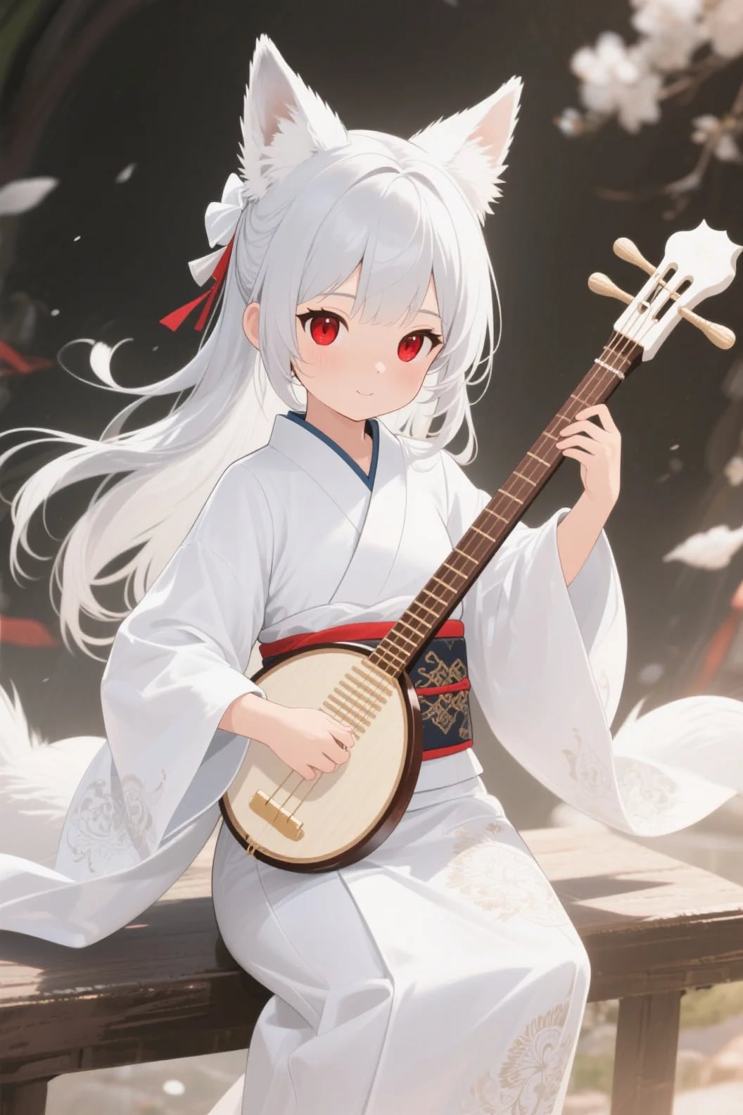 三味線ライブをするキツネの御神体様
