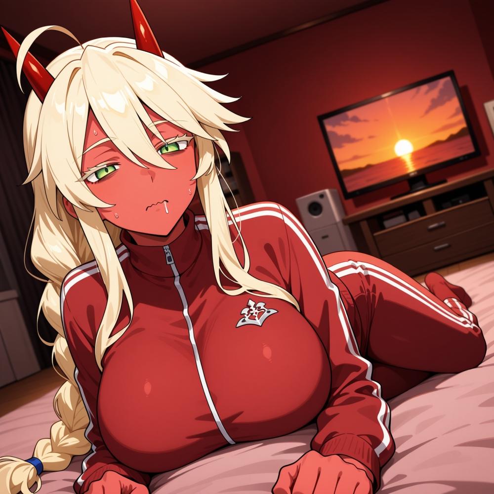 赤い自室汚部屋の赤ジャージ赤鬼コスプレ人妻達