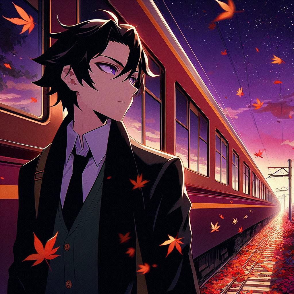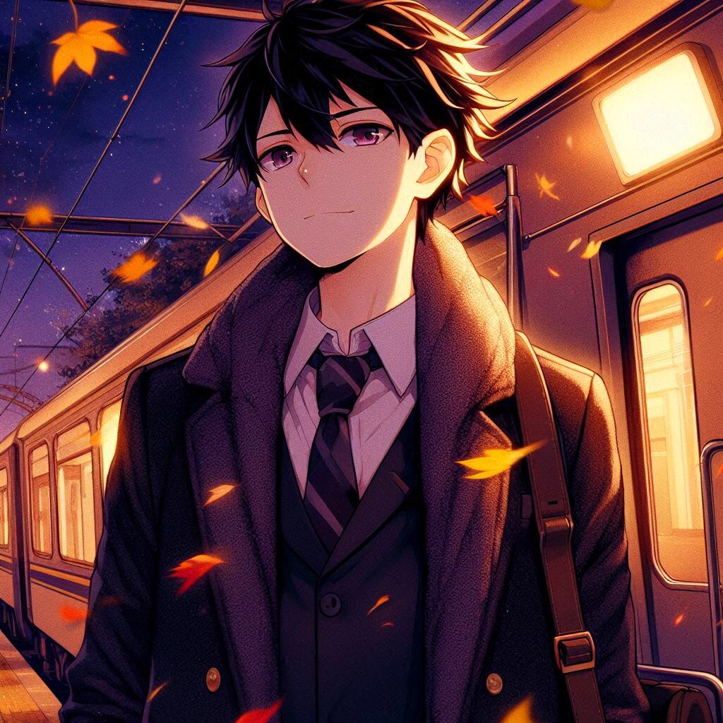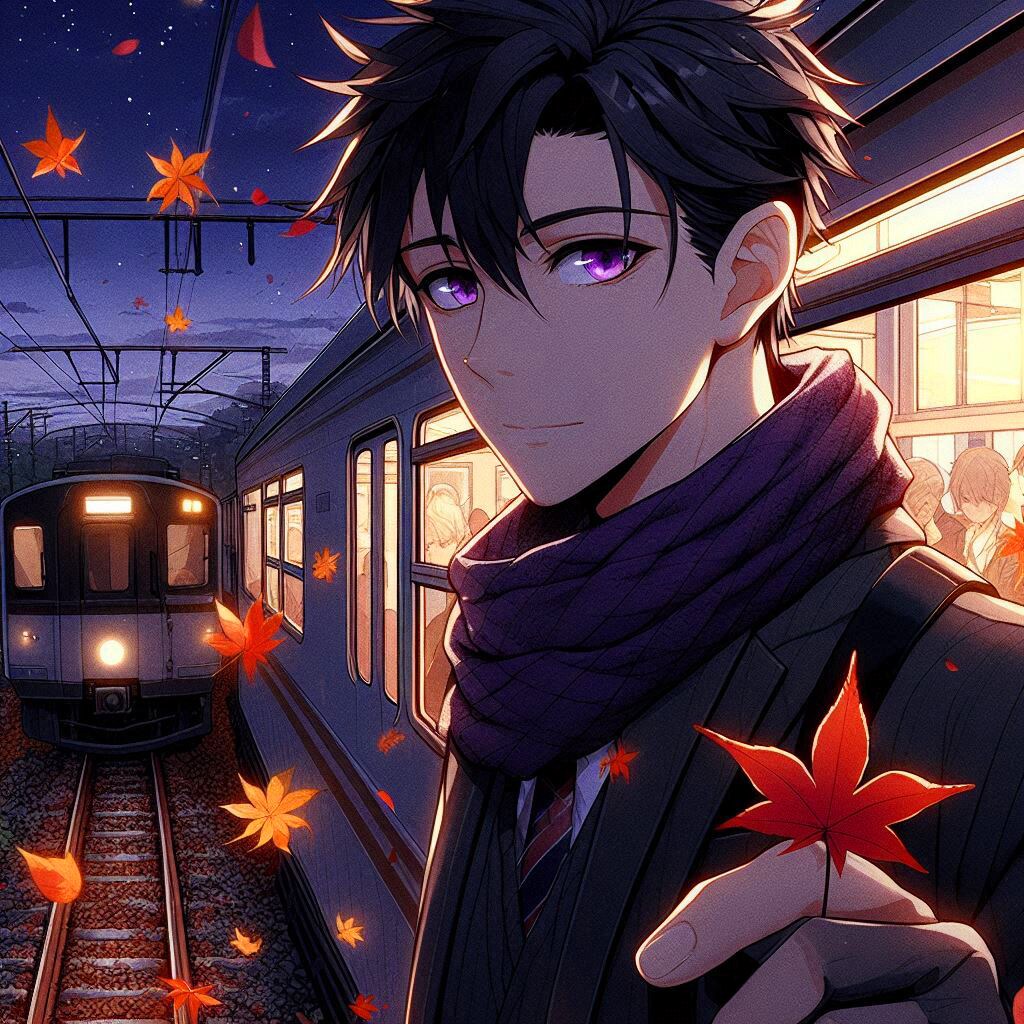 では、列車の旅に出た、黒髪短髪男性をご覧ください*