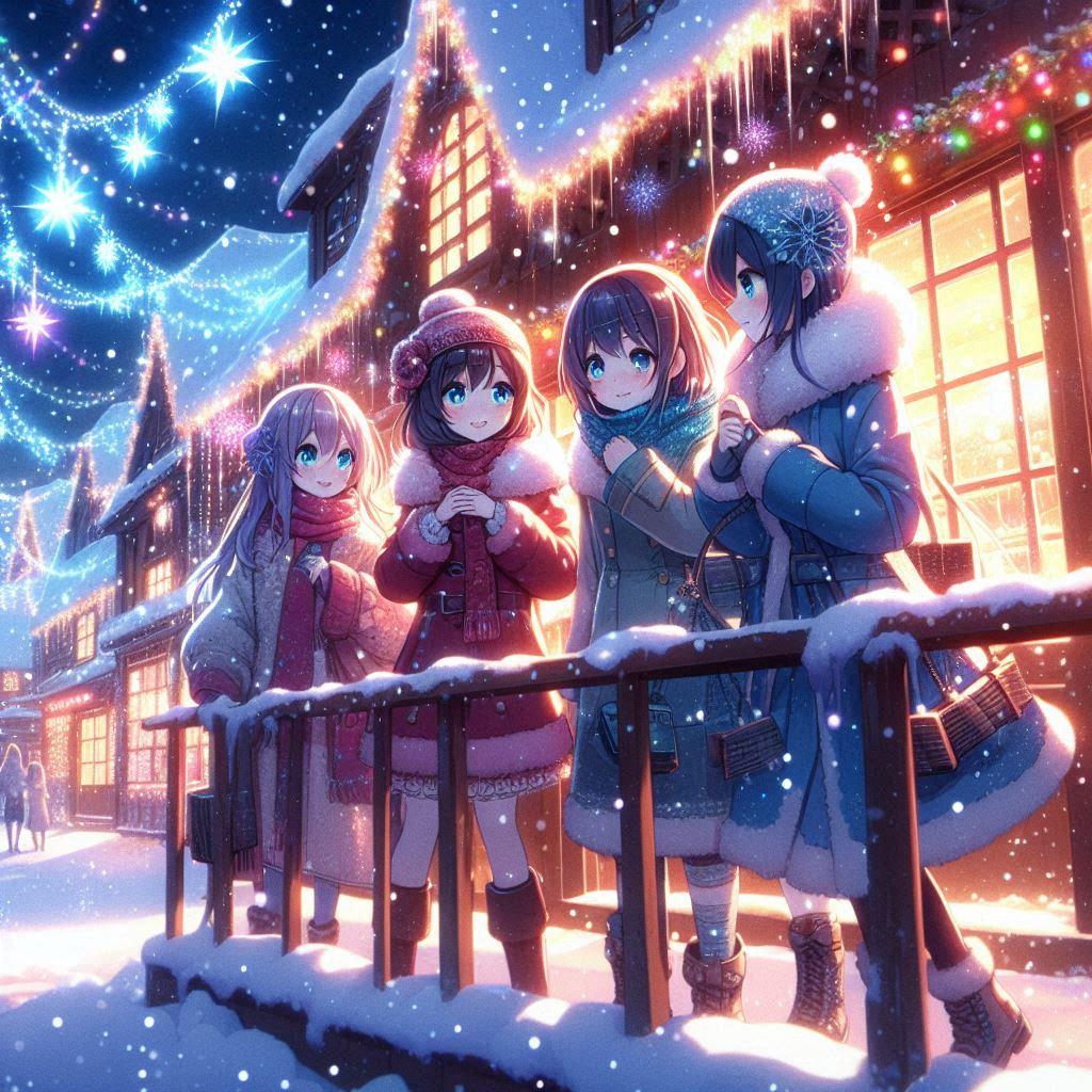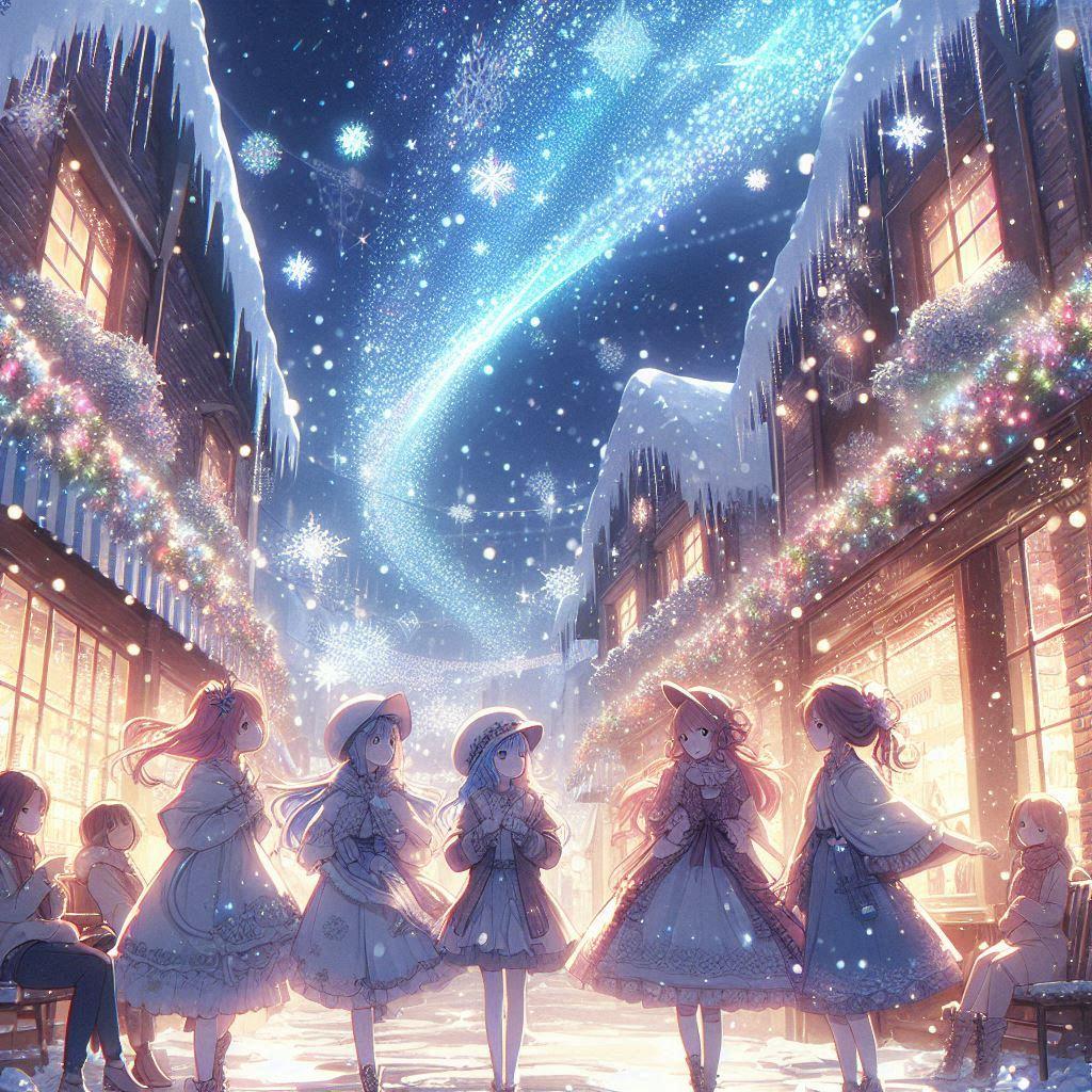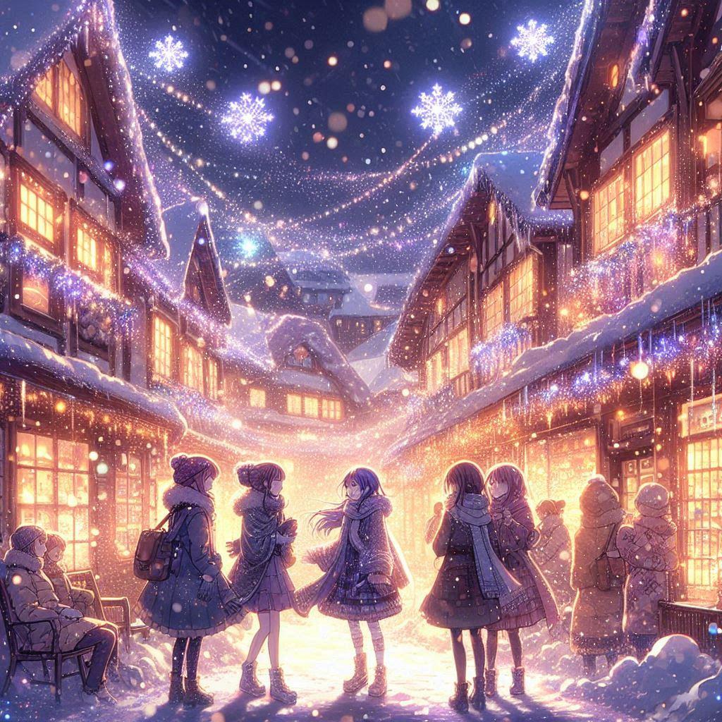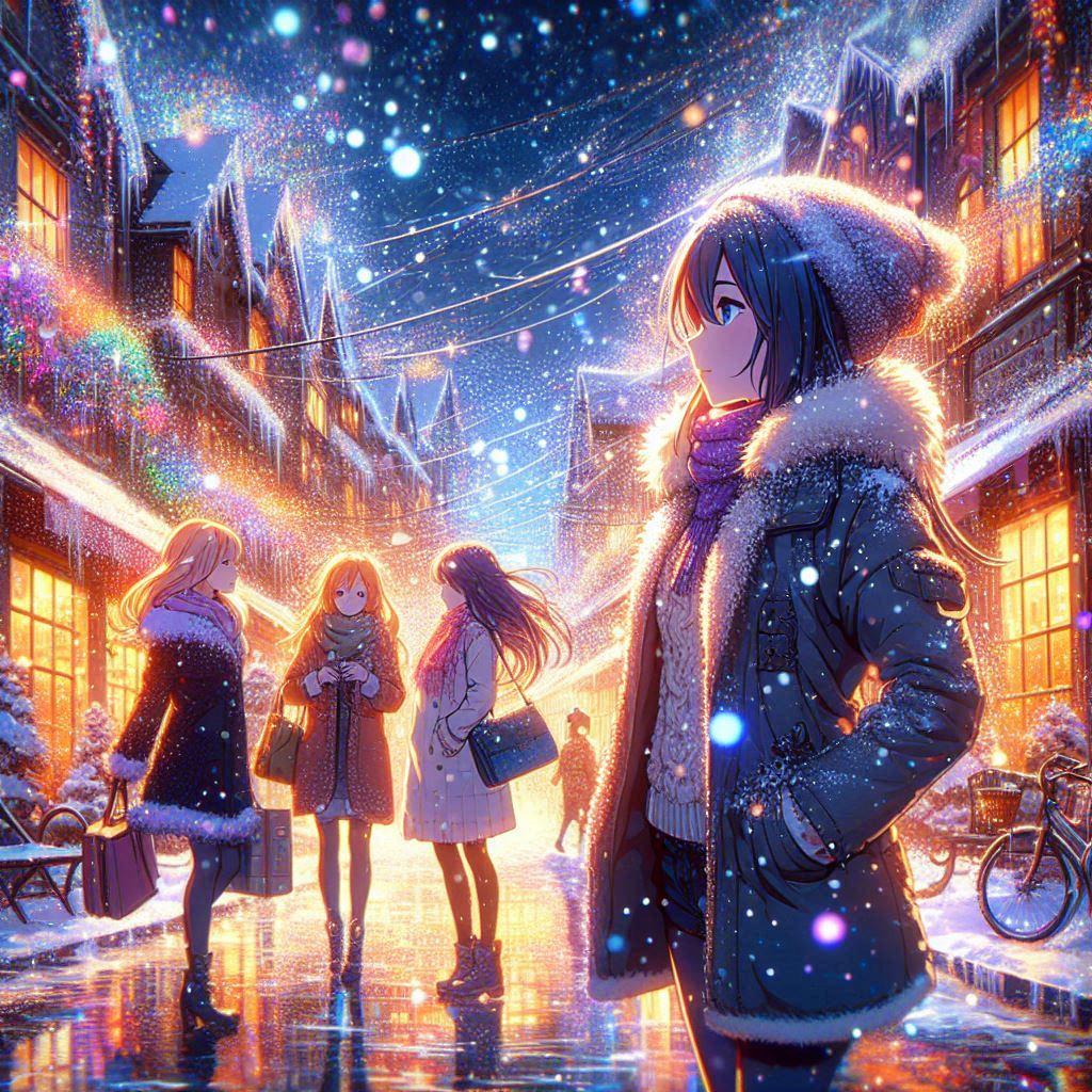 たとえ雪の日でも街はイリミネーションで輝きみんなは買い物に忙しい