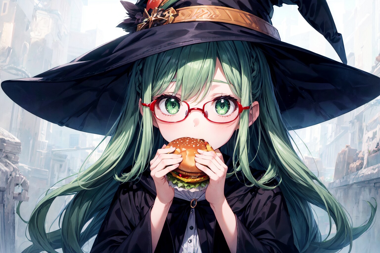 ハンバーガーを食べる魔女