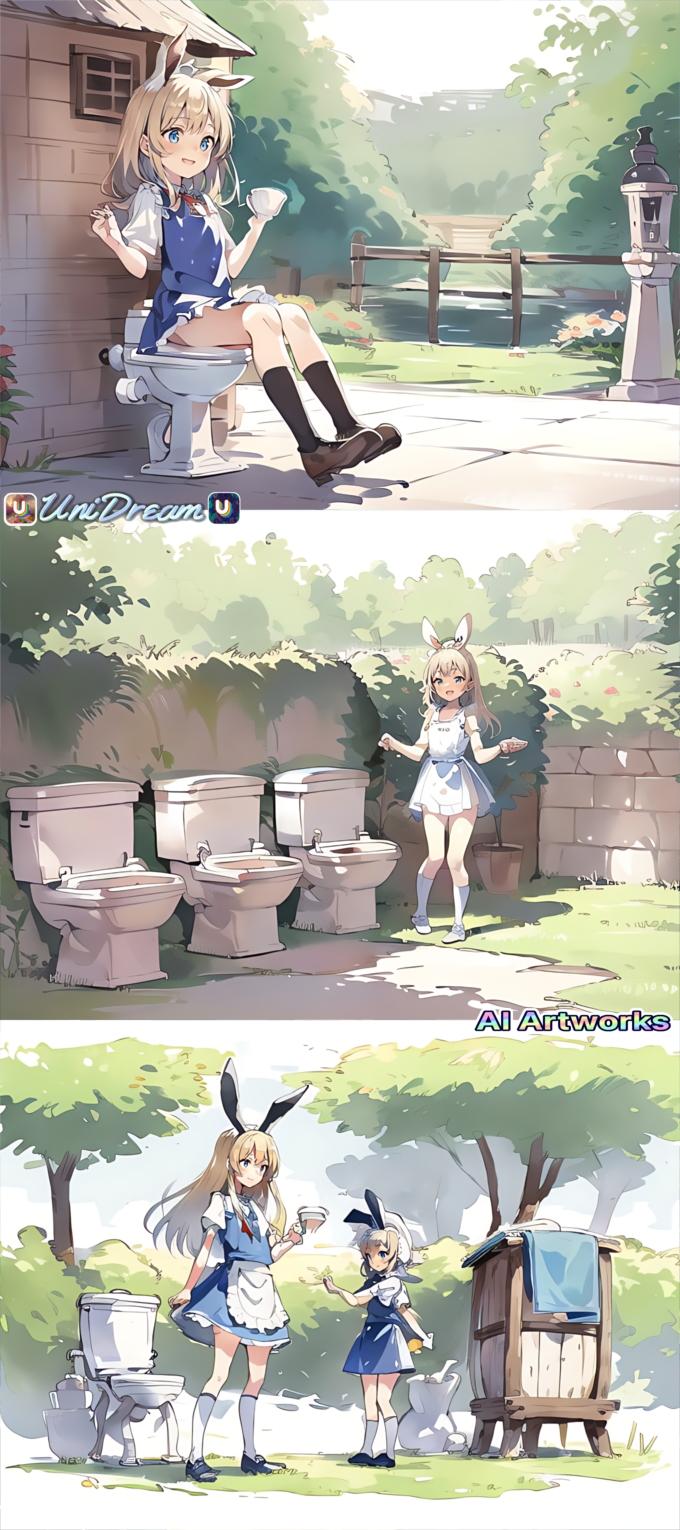 たまたまユーザーイベント「◯◯の国のアリス」の告知を見かけて、「そーいや少し前に呪文開発したっけな」と思い出して履歴を遡ってみたら、文字通り便所に書かれたようなクソプロンプトだった。なんでこうしようとしたのか全然覚えてねえ。