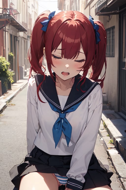 徹夜で朝帰りJK 眠すぎて路上で居眠り♡ 「眠たい・・・歩きたくない・・・。」