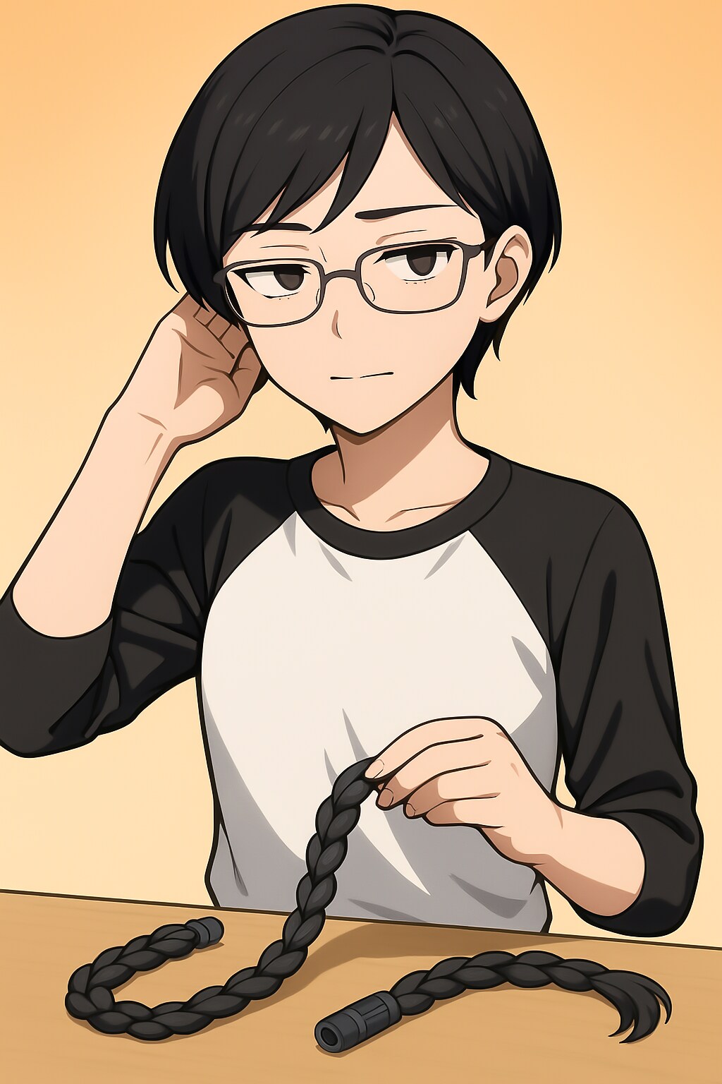 気分次第で付け替えできる三つ編みアタッチメント(んなもんあるかい)「気分でde三つ編み」広告関連カットです。