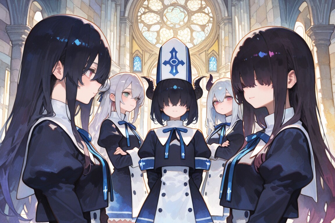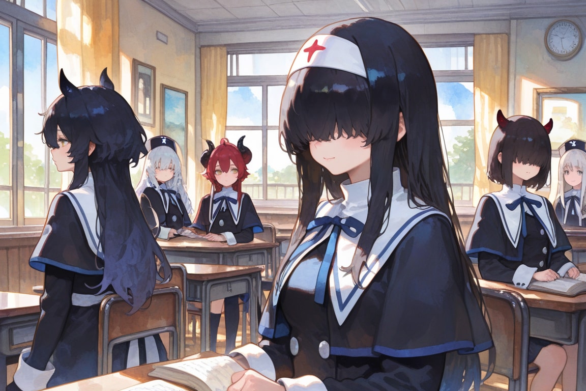 悪魔神官を目指す女の子たちが勉学に励んでいます