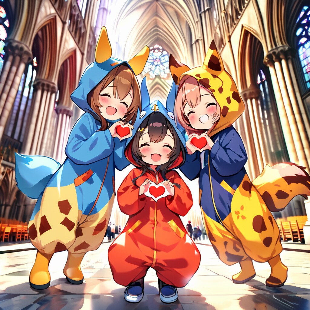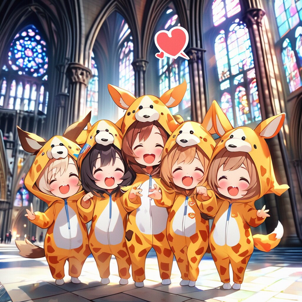 フランスのシャンパーニュ地方の中心都市ランスにあるノートルダム大聖堂を観光するキリン着ぐるみちび子ちゃんたちカワイイヾ(๑╹◡╹)ノ"