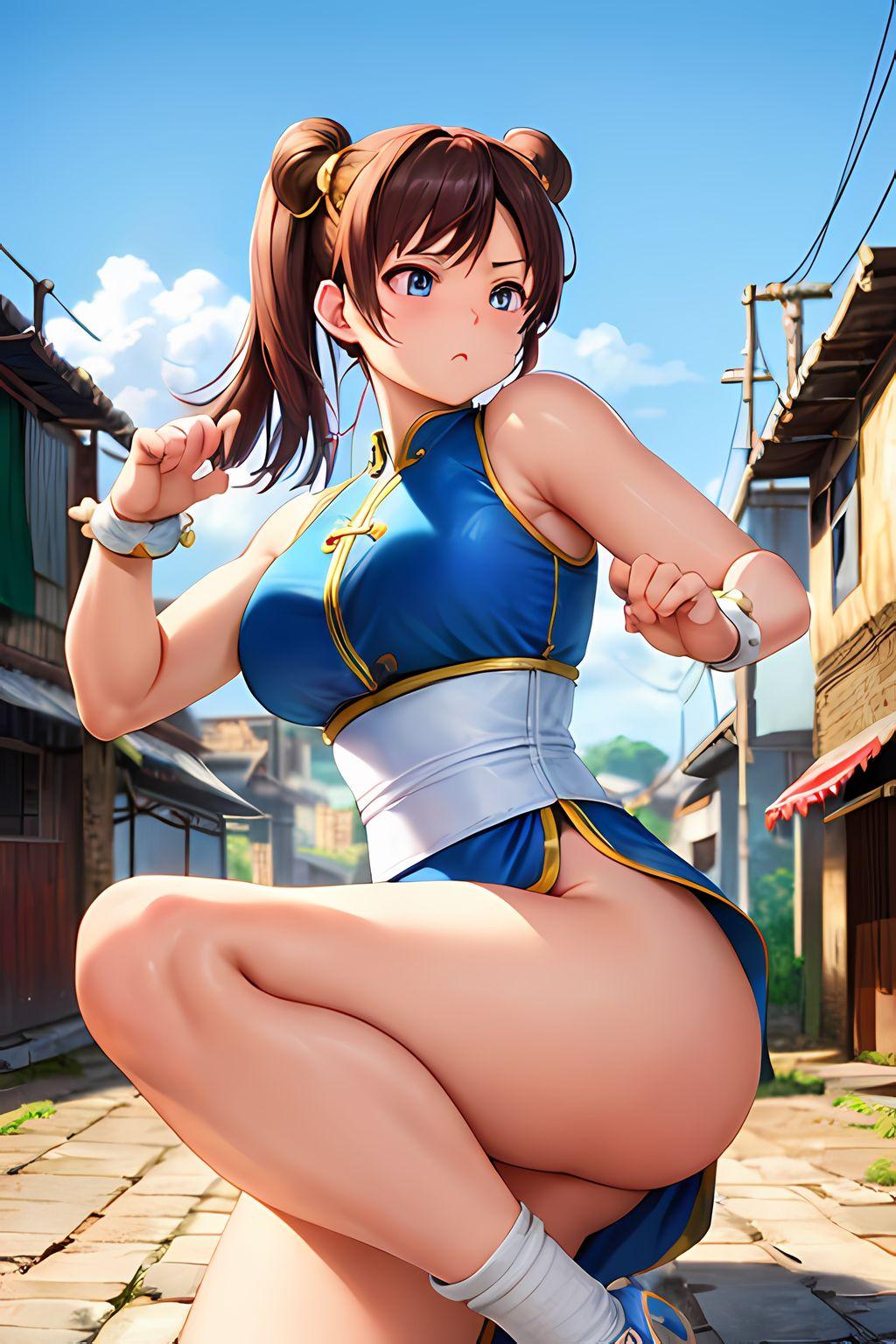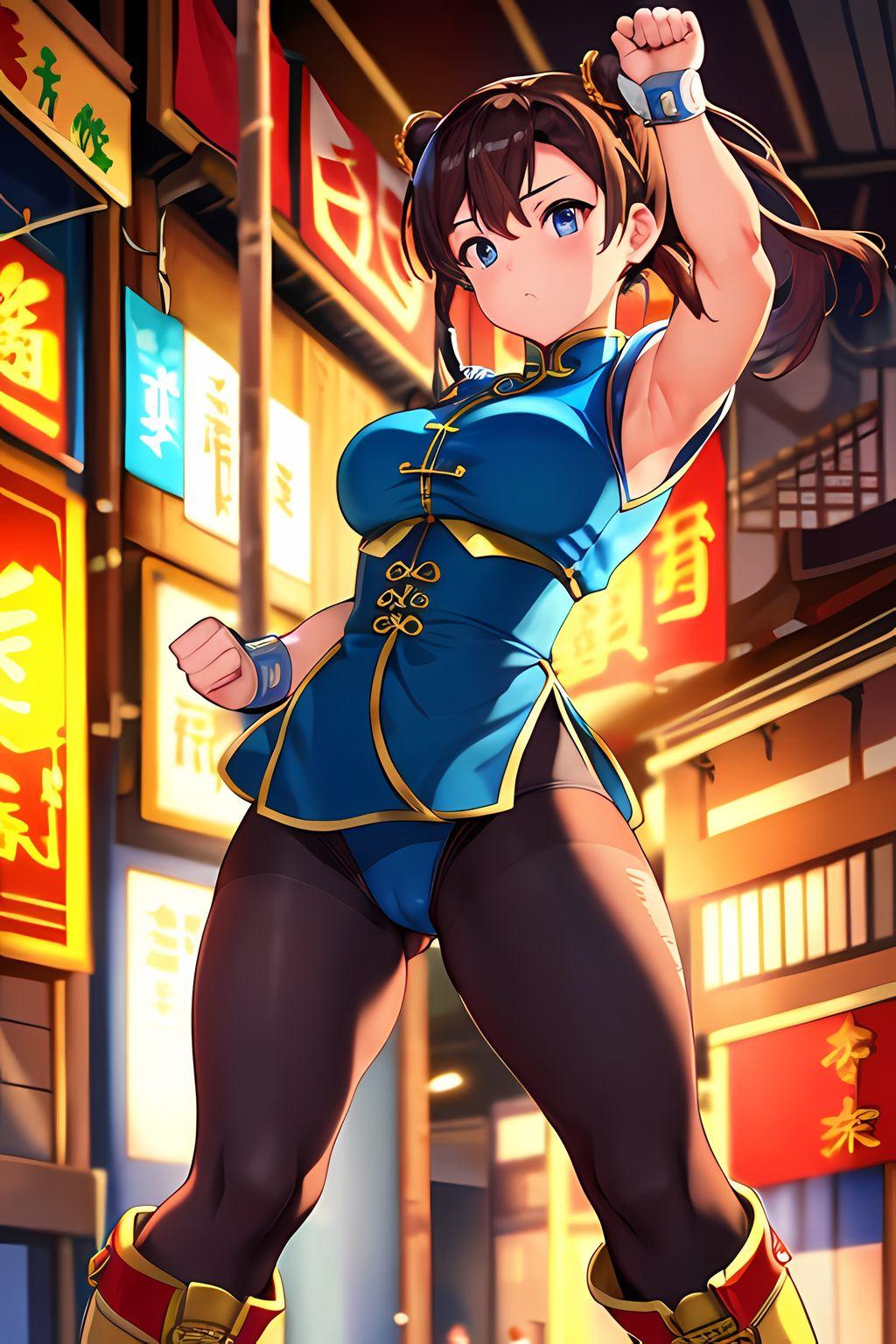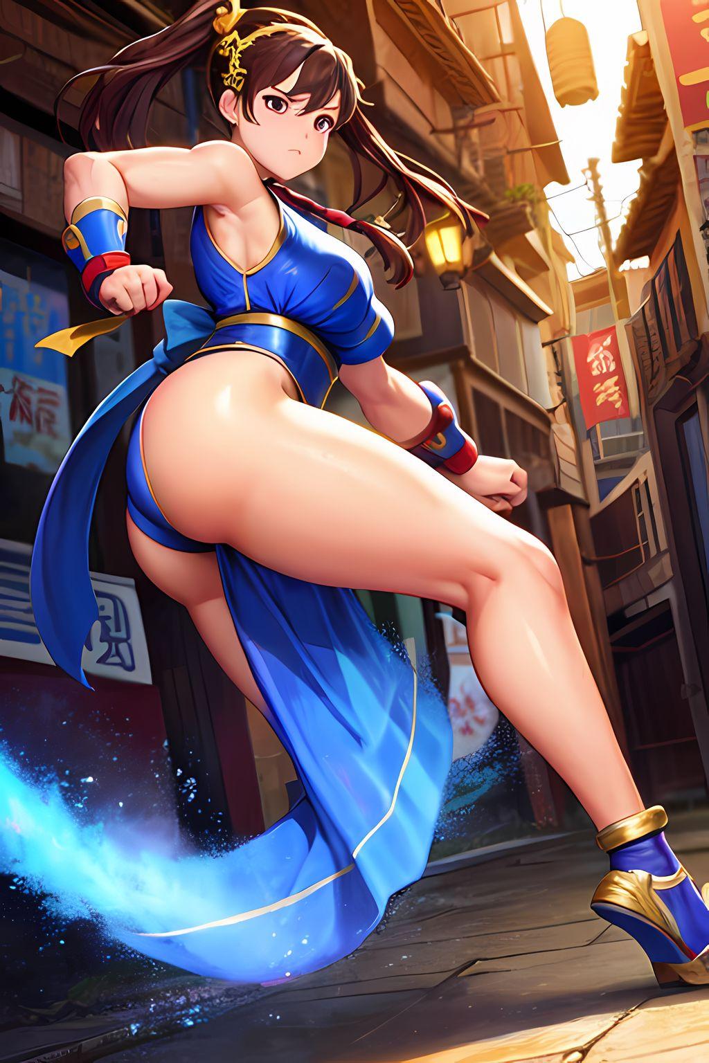 ちなみに春麗の必殺技は千烈脚とスピニングバードキックと蹴り中心だったが、そうするとR-15規定に引っかかるものが多発するのでパンチングプロンプトにて生成。
