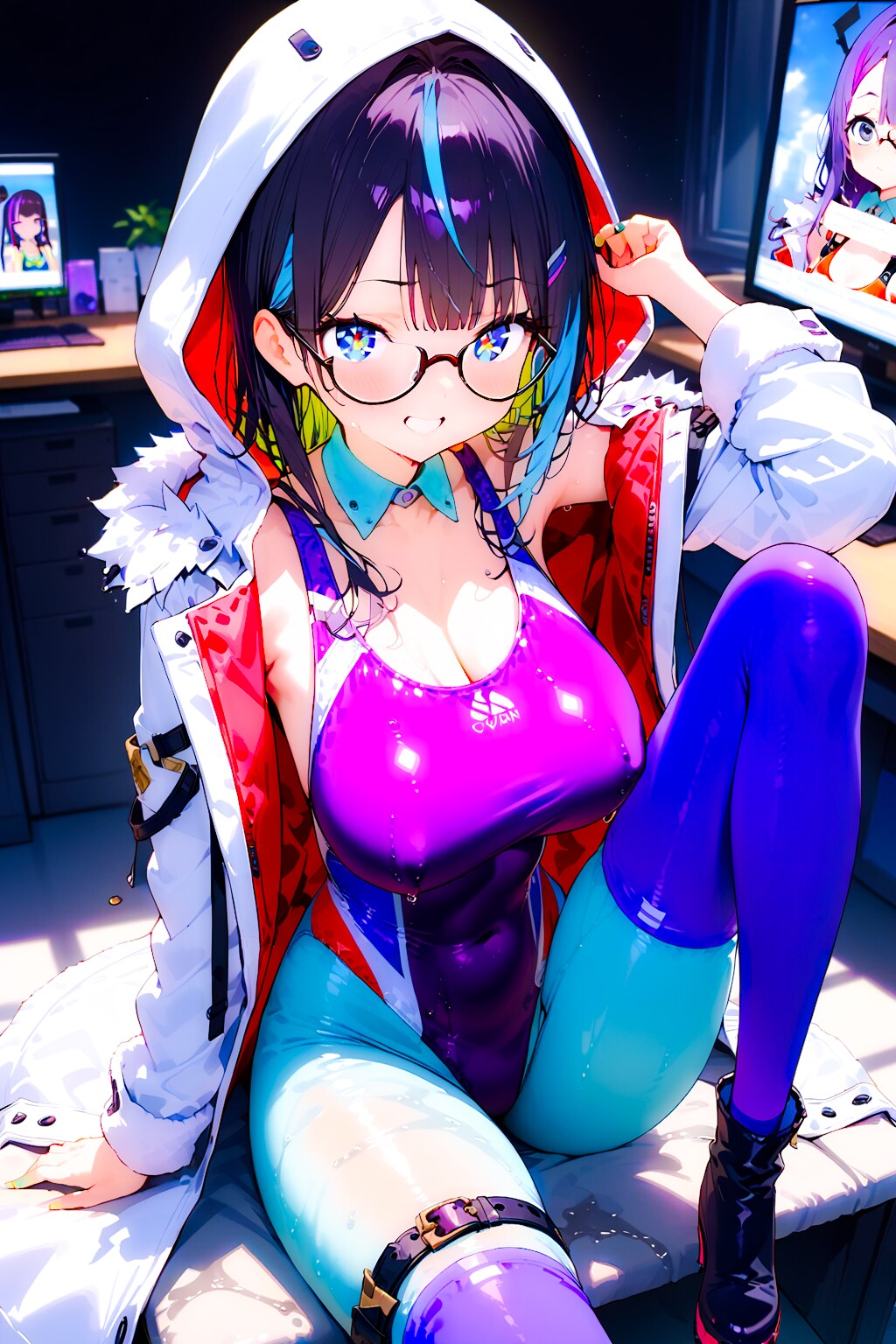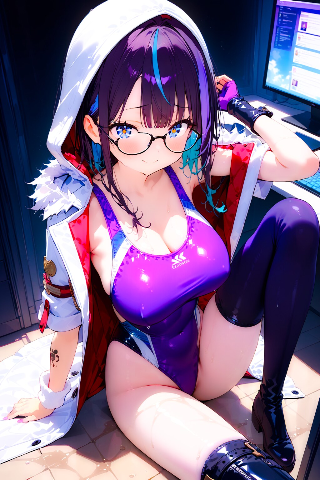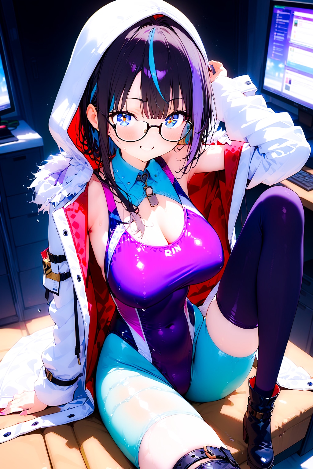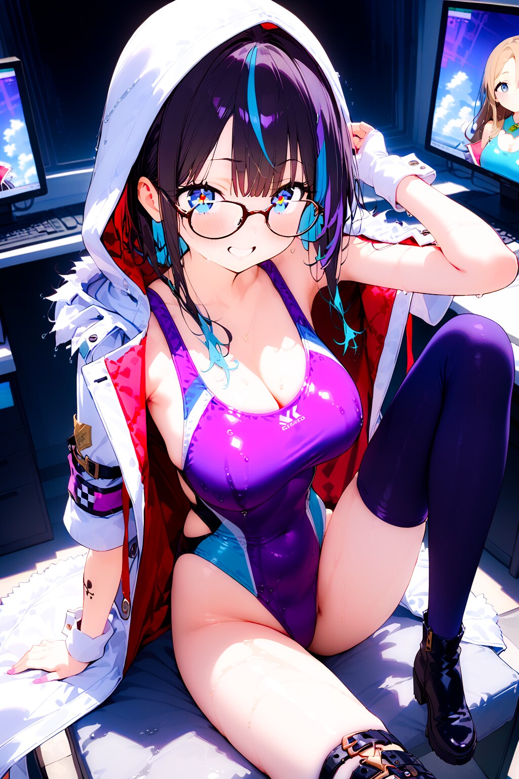 競泳水着の眼鏡ギャルエンジニアちゃん!