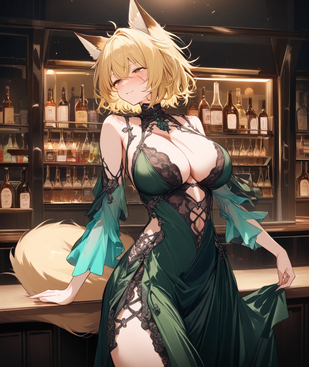 どこぞのバー?でお酒を飲んでいるシーンにしてみました。