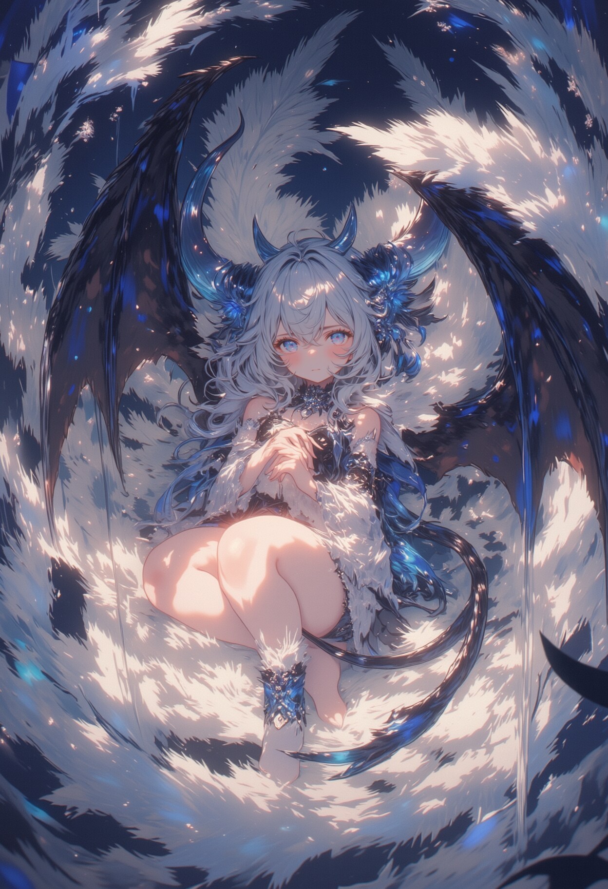 Steps: 30, Sampler: Euler, Schedule type: Simple, CFG scale: 1, Distilled CFG Scale: 3.5, Seed: 3220509993, Size: 832x1216, Model hash: 2abace2516, Model: lyhAnimeFlux_v4Niji, Denoising strength: 0.4, ADetailer model: face_yolov8n.pt, ADetailer confidence: 0.4, ADetailer dilate erode: 5, ADetailer mask blur: 4, ADetailer denoising strength: 0.4, ADetailer inpaint only masked: True, ADetailer inpaint padding: 32, ADetailer use separate checkpoint: True, ADetailer checkpoint: lyhAnimeFlux_v4Niji [2abace2516], ADetailer use separate VAE: True, ADetailer VAE: lyh_anime_flux_ae.safetensors, ADetailer version: 24.11.1, Hires prompt: "aidmamj6.1, A cute girl demon with large, fluffy feathered wings sits curled up in a hole, hugging her knees and floating within her feathers.\ndetailed cute face\nbeautiful thighs\ndreamlike reality, \n\n<lora:aidmaMJ6.1_v0.5_3:0.6> <lora:flux_illustriousXL_v2-rev18:0.8>", Hires upscale: 1.5, Hires steps: 20, Hires upscaler: Latent, Version: f2.0.1v1.10.1-previous-528-ge55cde9b, Module 1: clip_l, Module 2: t5xxl_fp16, Module 3: lyh_anime_flux_ae