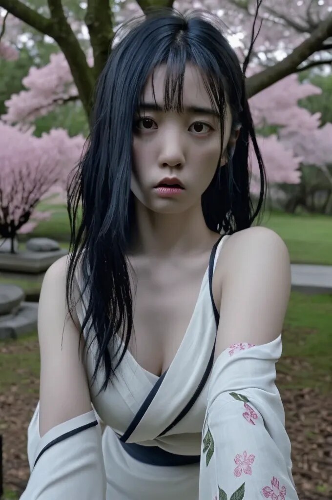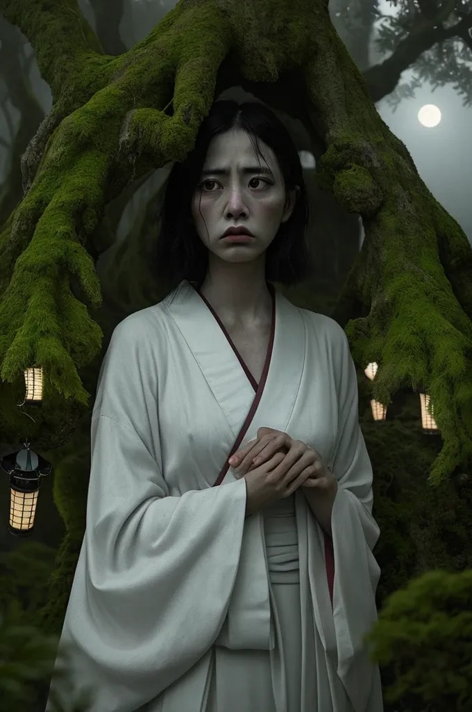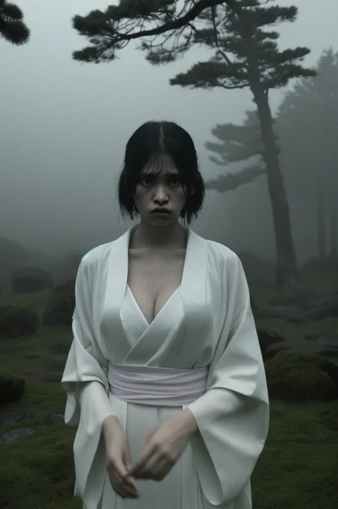 例)和ホラー撮影用のカメラで女の幽霊の画像生成のプロンプトを書いて