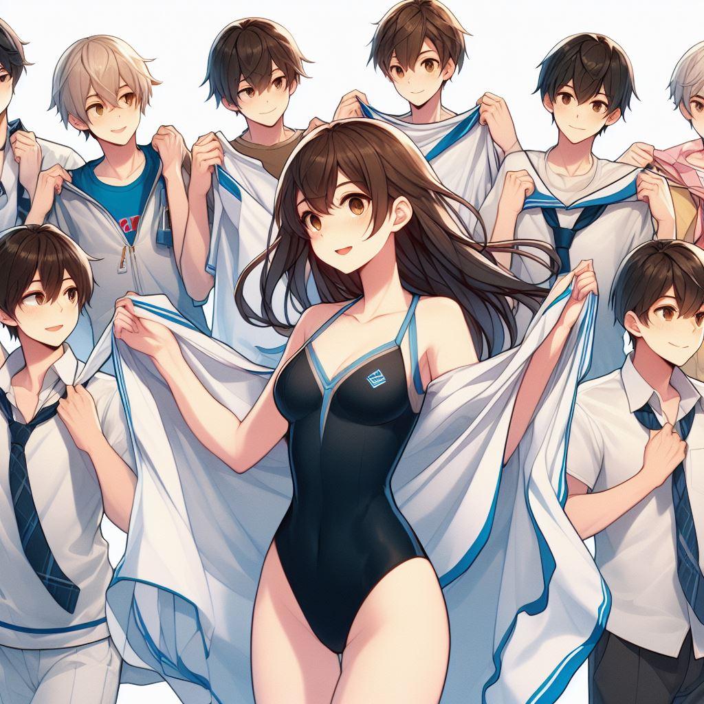 jacket partially removed, heart in eye, burnt clothes, holding fishing rod, kanji, doujin cover, pentagram, tape gag, adjusting headwear, red socks, friends, cloud print, coke-bottle glasses, oral invitation, competition school swimsuit, barbell piercing, gradient legwear, prisoner, blood on breasts, wind chime, carrying over shoulder, tape measure, flaming weapon
