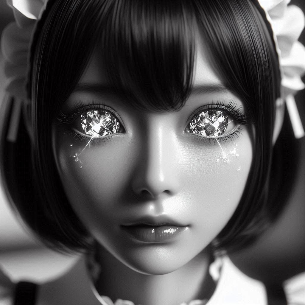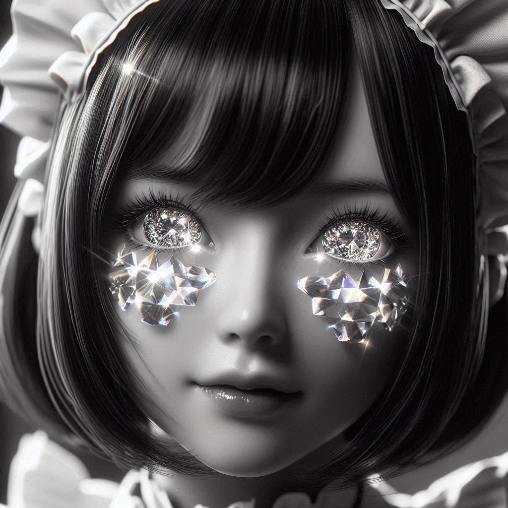 少し前にお題にあった「白黒世界の君の瞳」の時のプロンプトを流用しました。