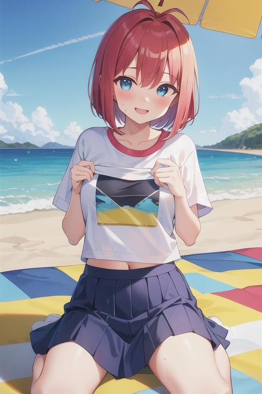 しばらく休憩の後に撮影を再開することになった。ビキニは露出が多いので上にTシャツや上着を着た状態で撮影を監督が提案し、再開。