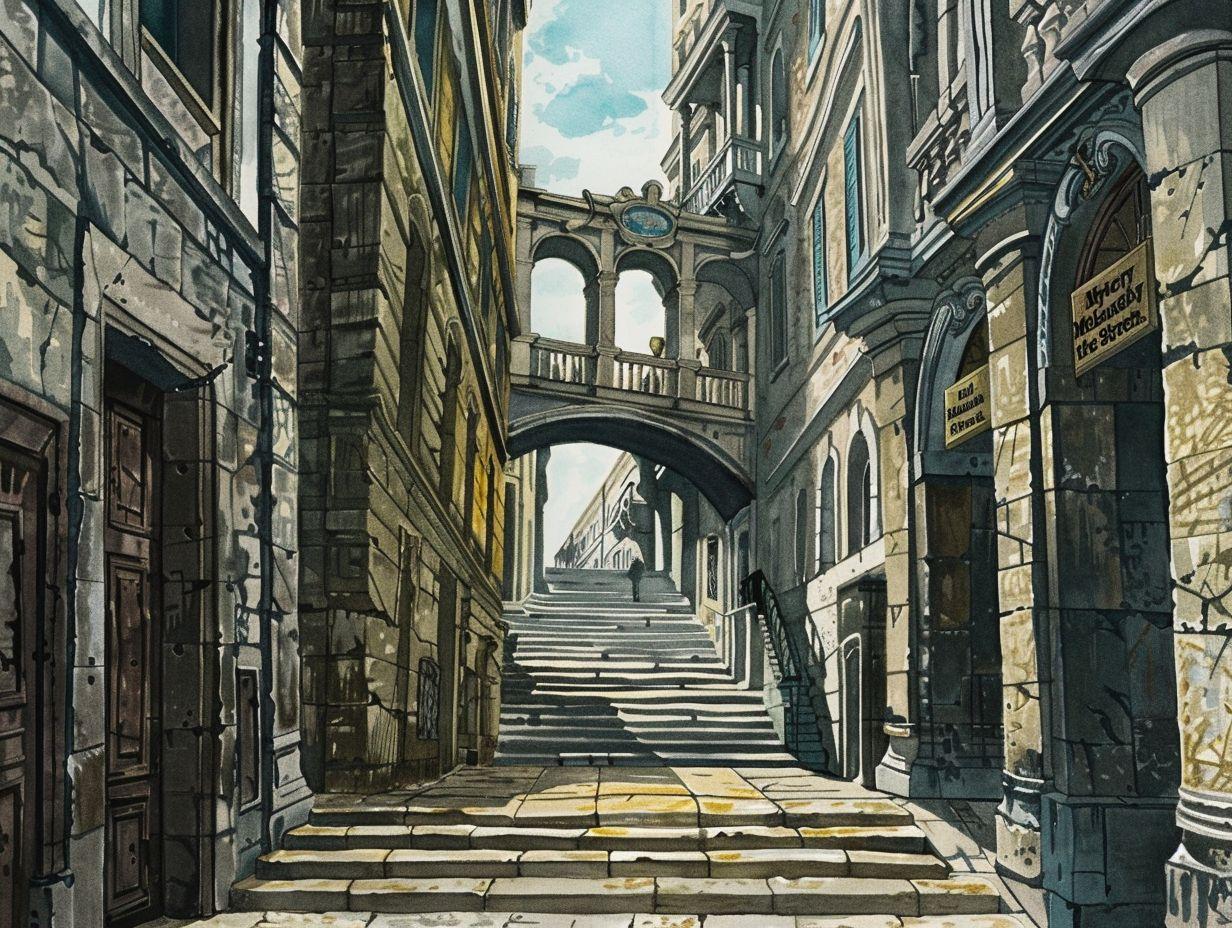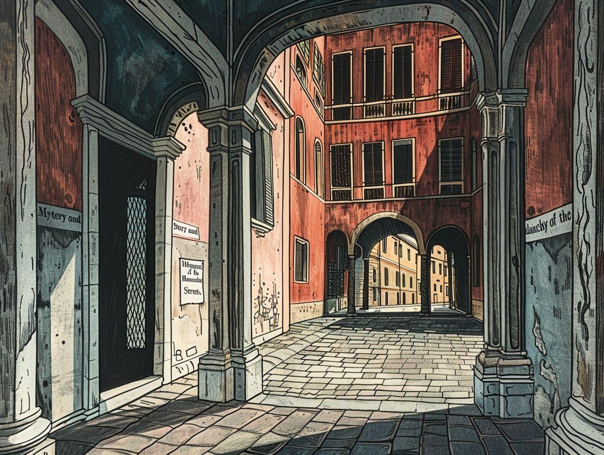 キリコの「街路の神秘と憂鬱」をモチーフにして生成してみた。