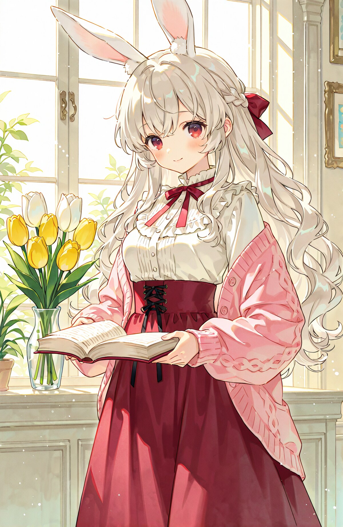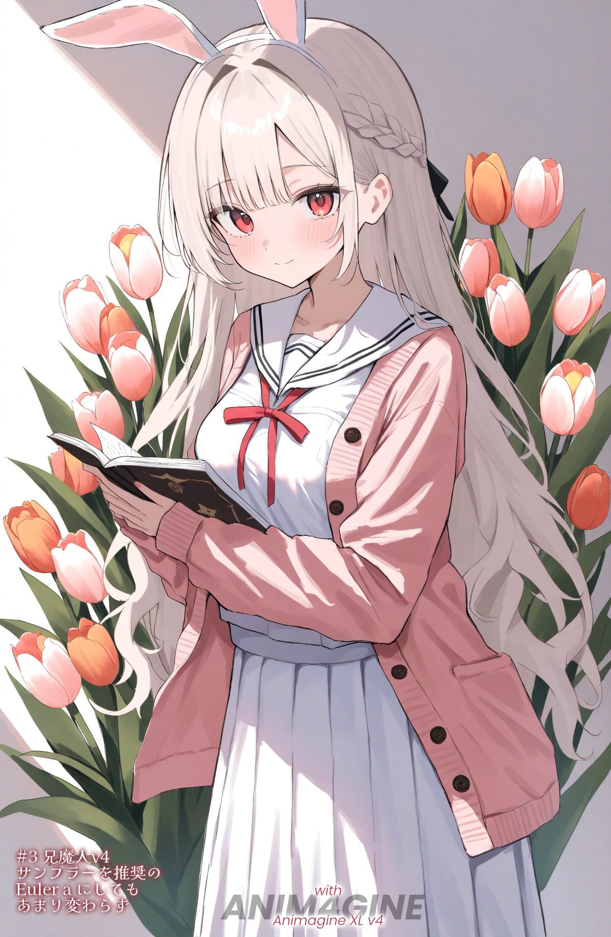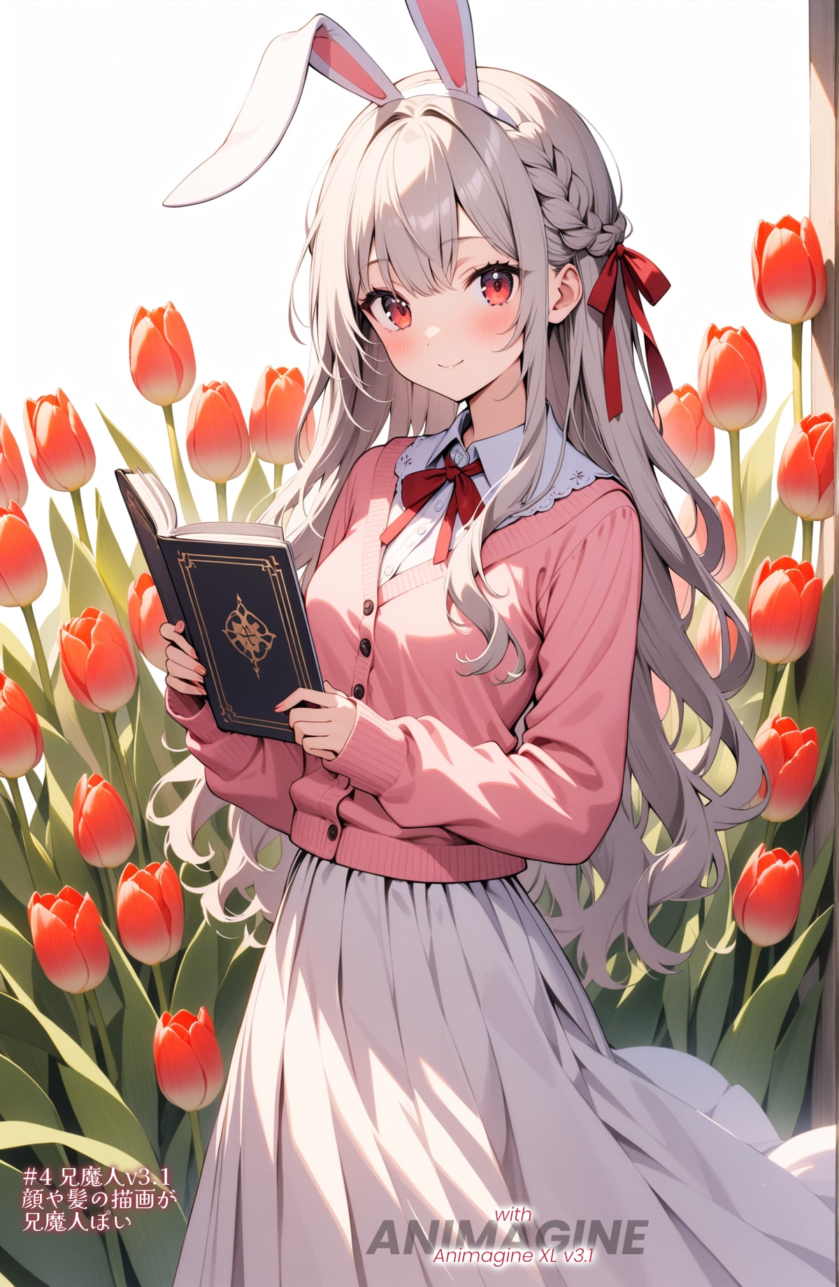 ●5~10枚目:ShiitakeMix v1:ということで気を取り直して、1枚目と同じモデルに戻して様々な春を待つエリアーヌさんです。ところどころ6本指になったりしますが指の安定度も高いし、本の破綻も少ないです。