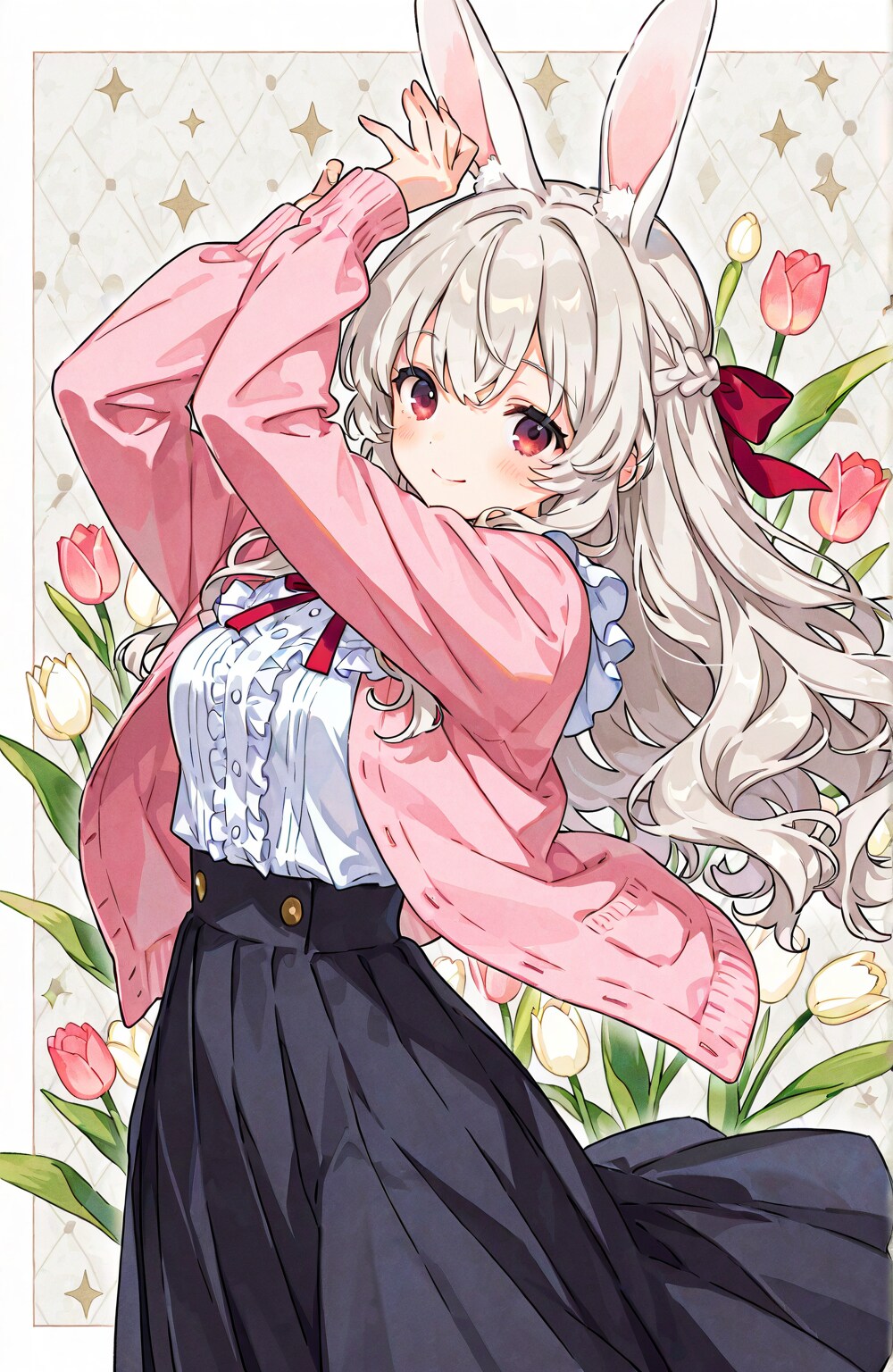 お嬢様らしさを出そうとした結果、制服っぽくなくなってしまいましたが今度は兎娘エリアーヌで1枚です。