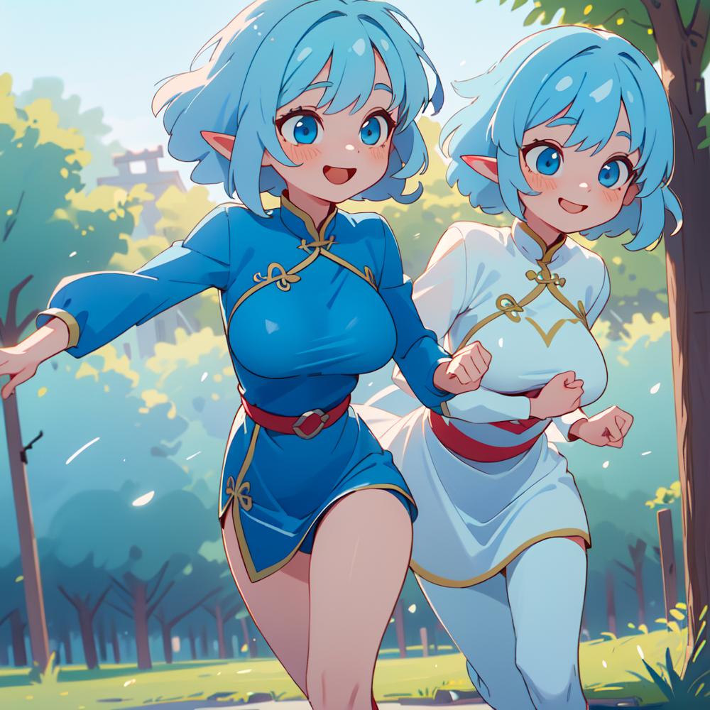リルシス・Lilsis(青髪のエルフ。身体能力に優れたツンデレ元気っ子。普段は姉に対してきつい態度だが、内心はシスコンマキシマム)