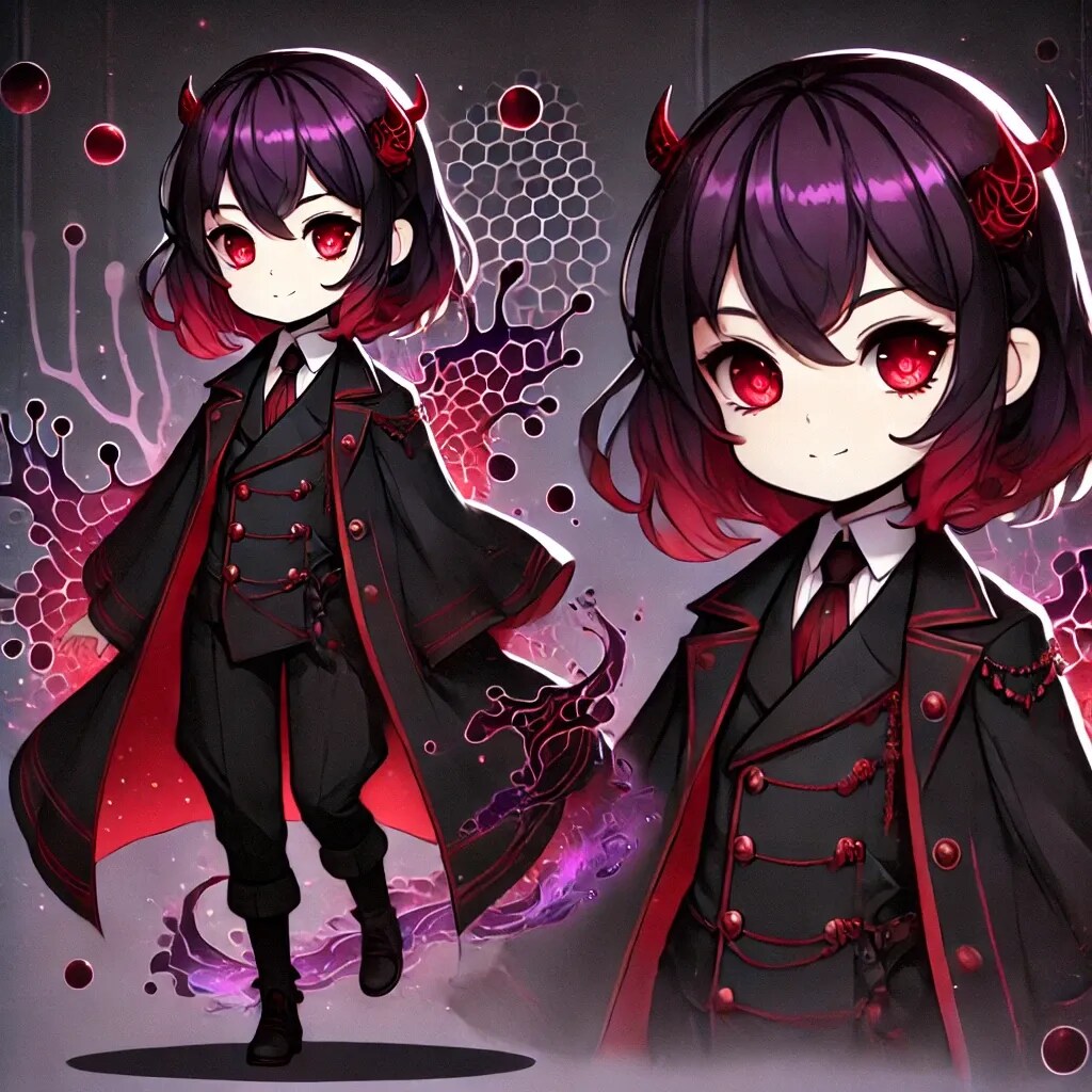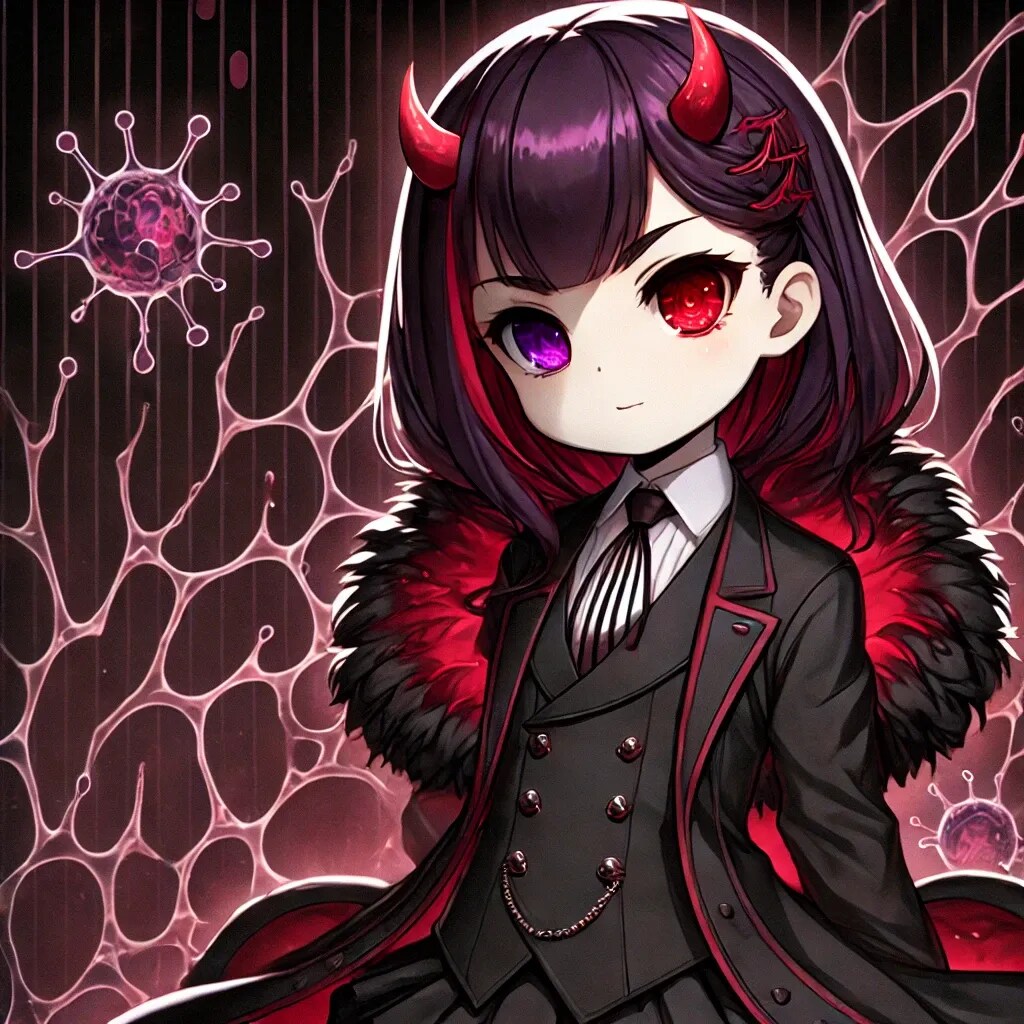 ダークカラーのフォーマルスーツに身を包み、角と目元の輝きが彼女の誇り高き競争精神と気高さを表現しています。