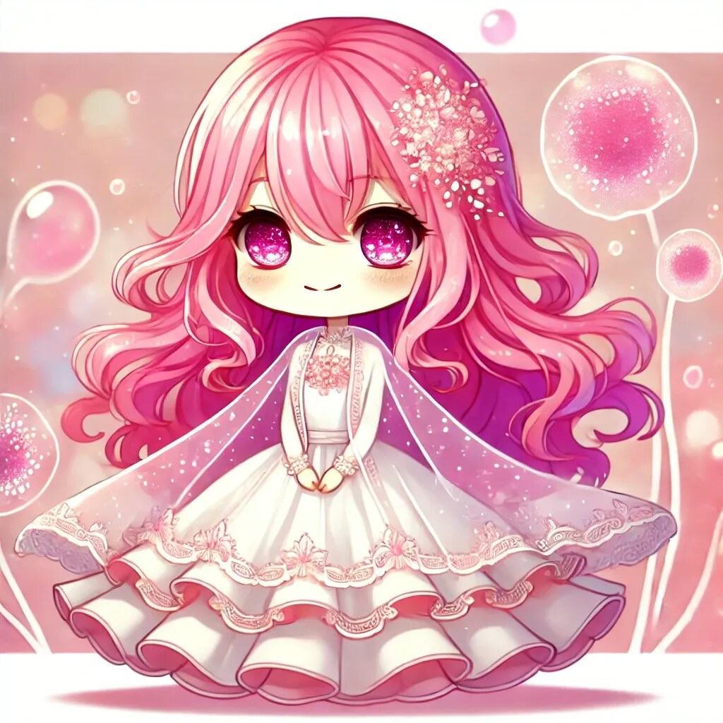 ぷにぷにの桃色生体細胞と融合した彼女が、純白のドレスに包まれる姿は、生命の神秘と感情の美しさが重なり合