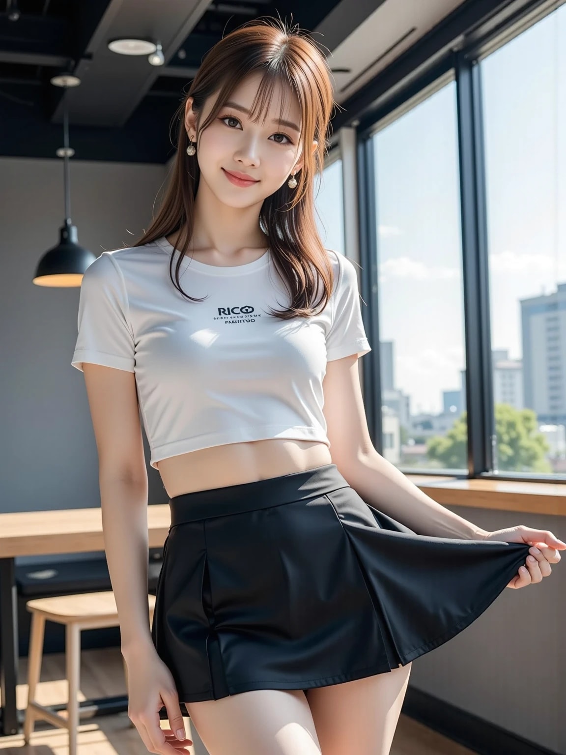 今回はクロップトップのTシャツにミニスカートを合わせました。