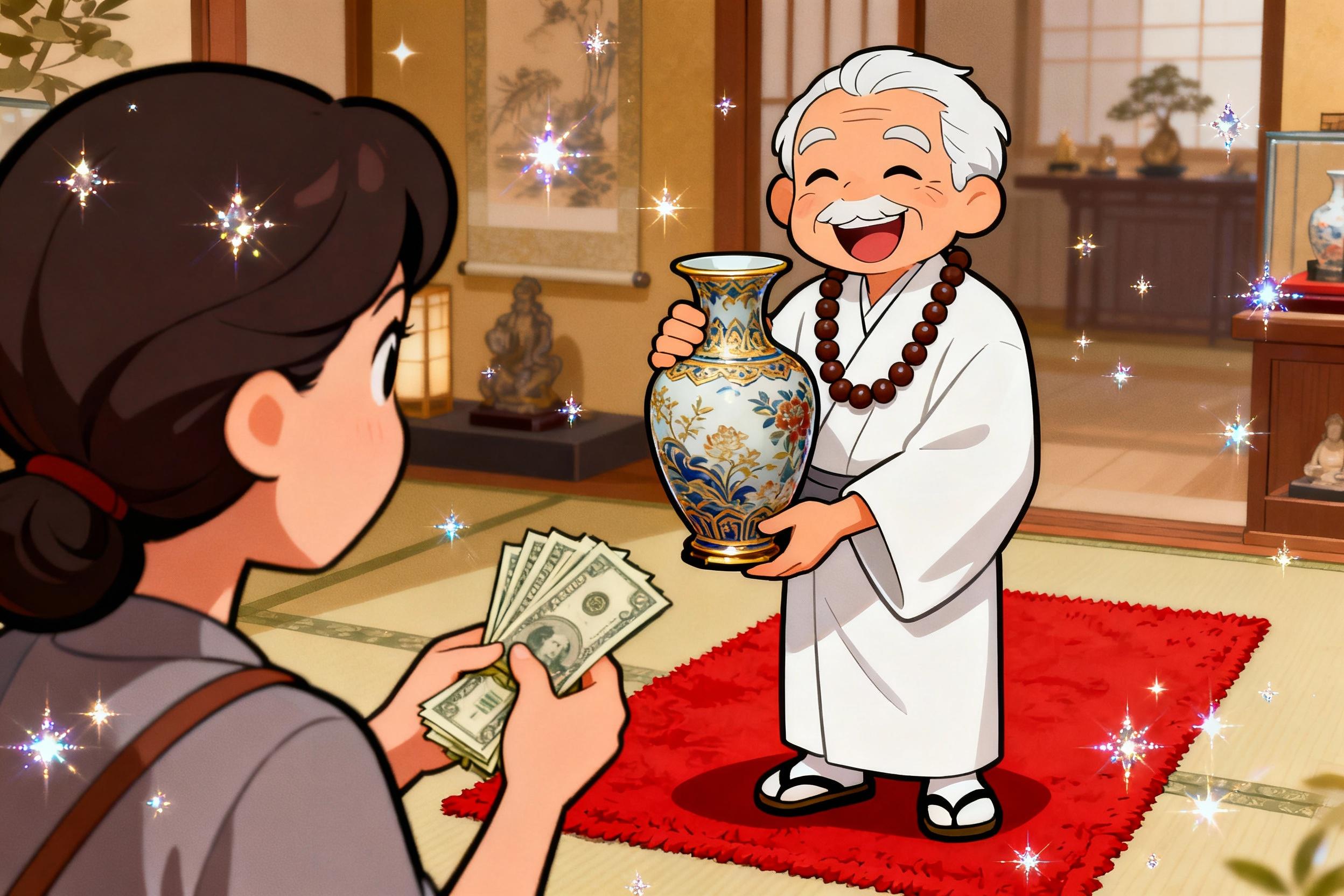 実は、ご老人はただの売り子で、綺麗な女性に騙されてるのかも⁉😱