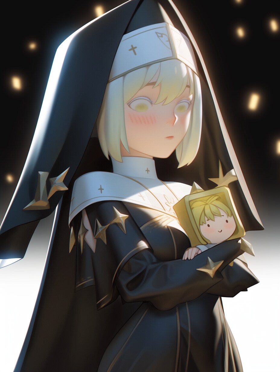 シスターの2D画像を学習させ、上述のプロンプトを加えて生み出させたimg2imgです