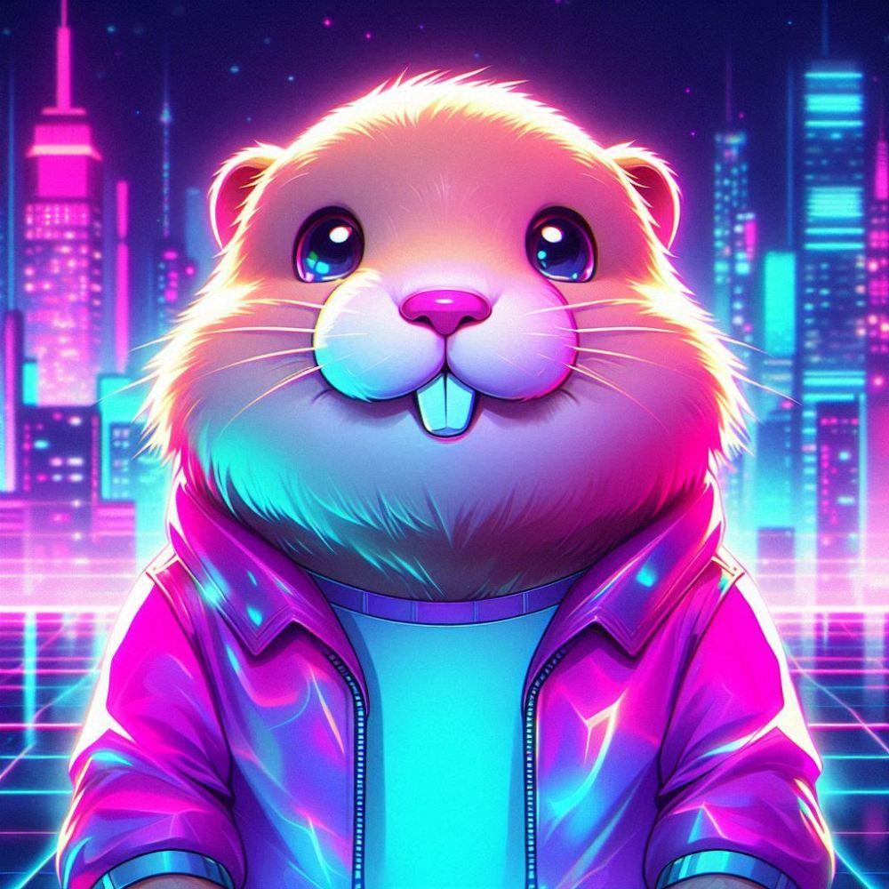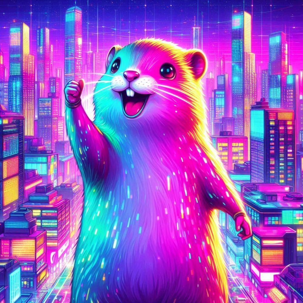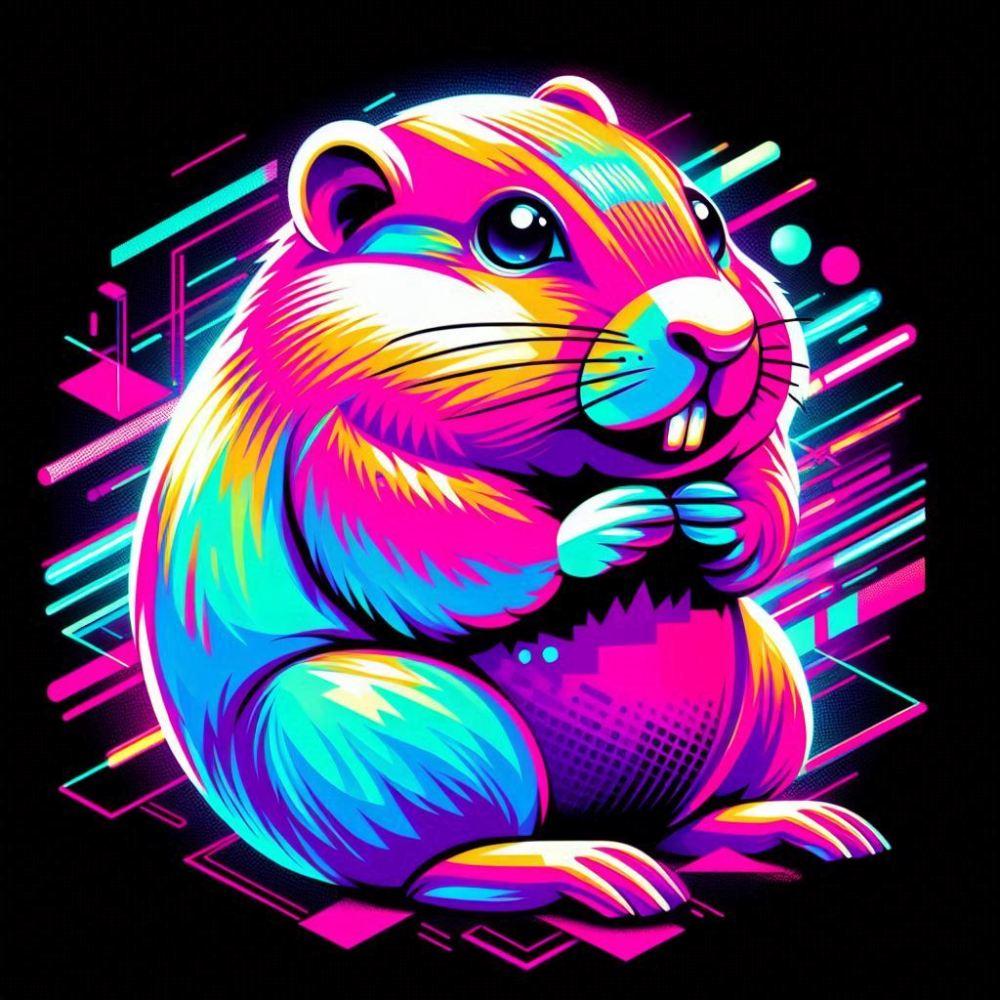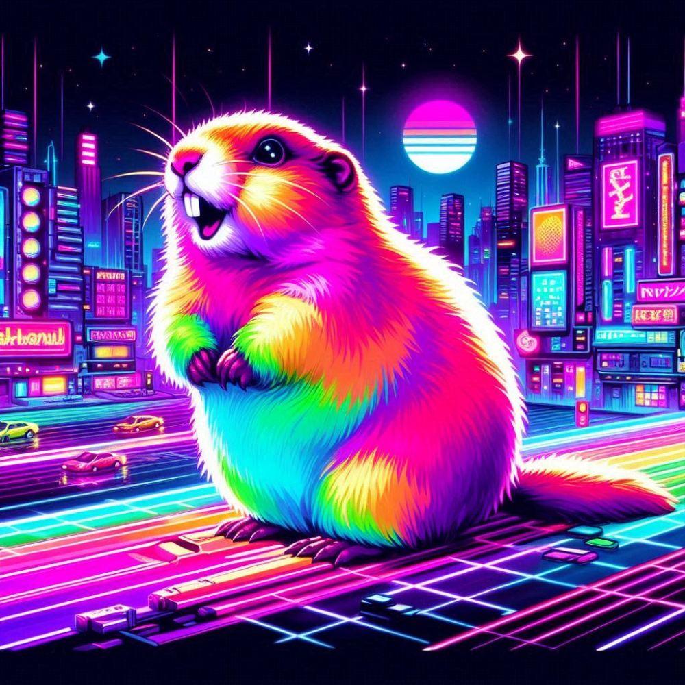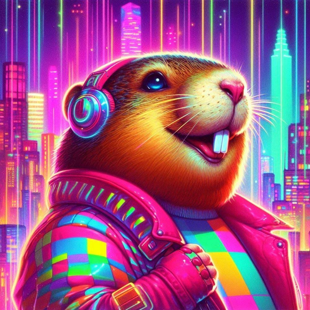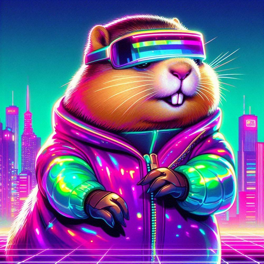 サイバーパンクアクリルアニメ風、蛍光色マーモット