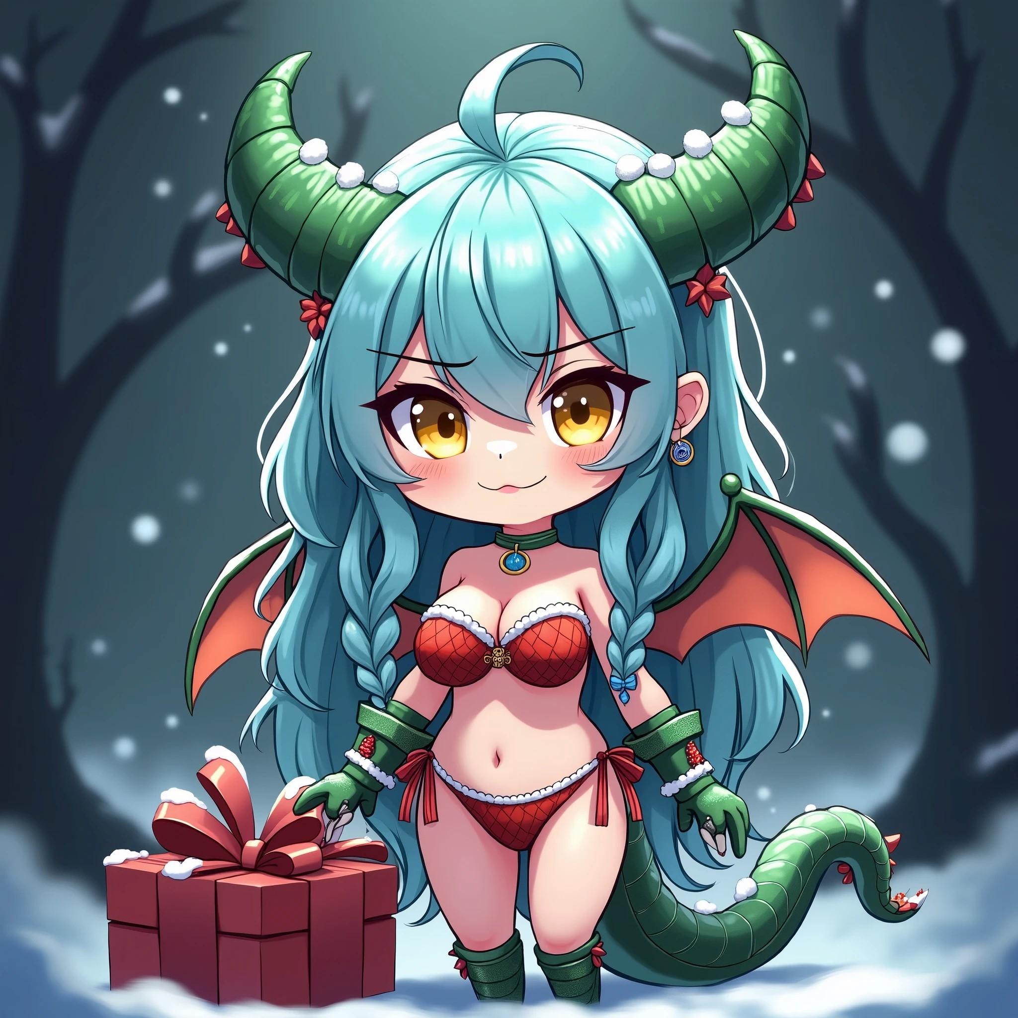 Christmas pattern dragon scale bandeau bikini,dragon horns,wing,tail,