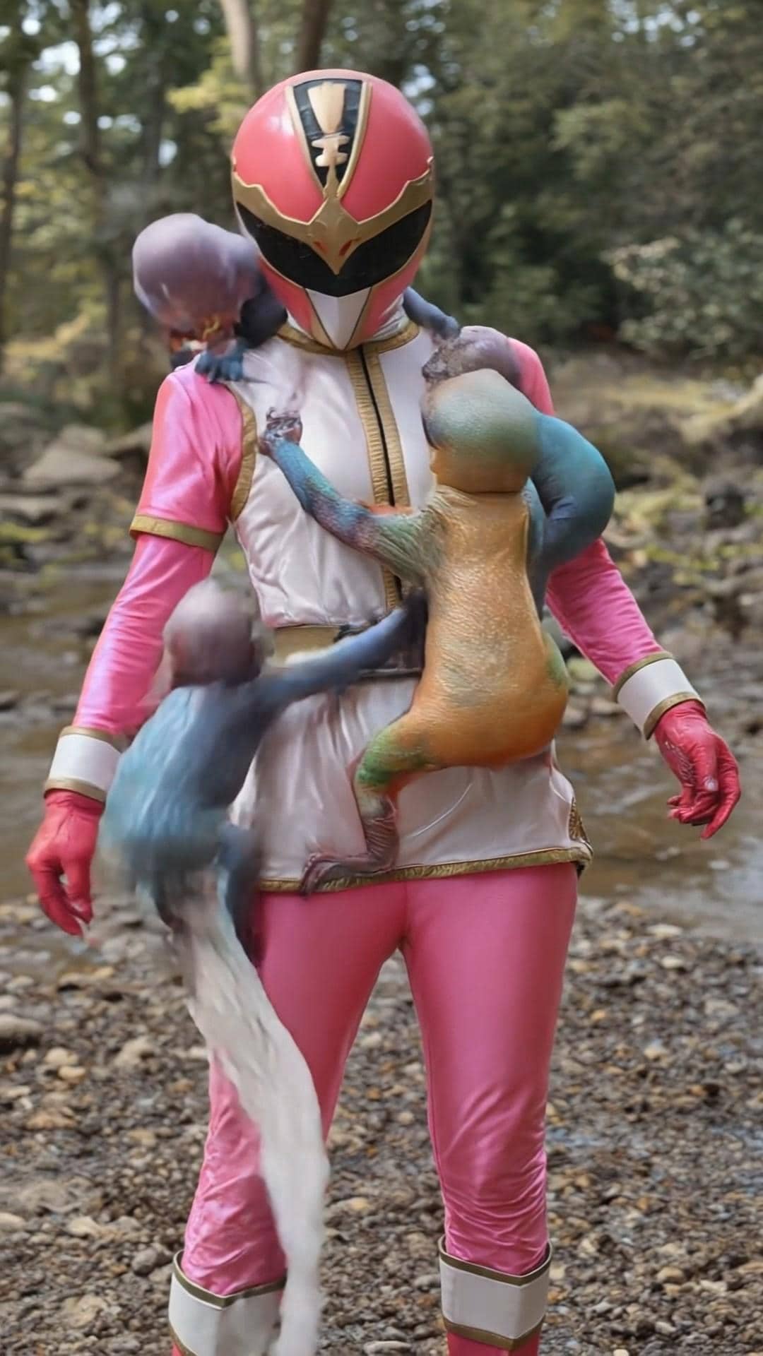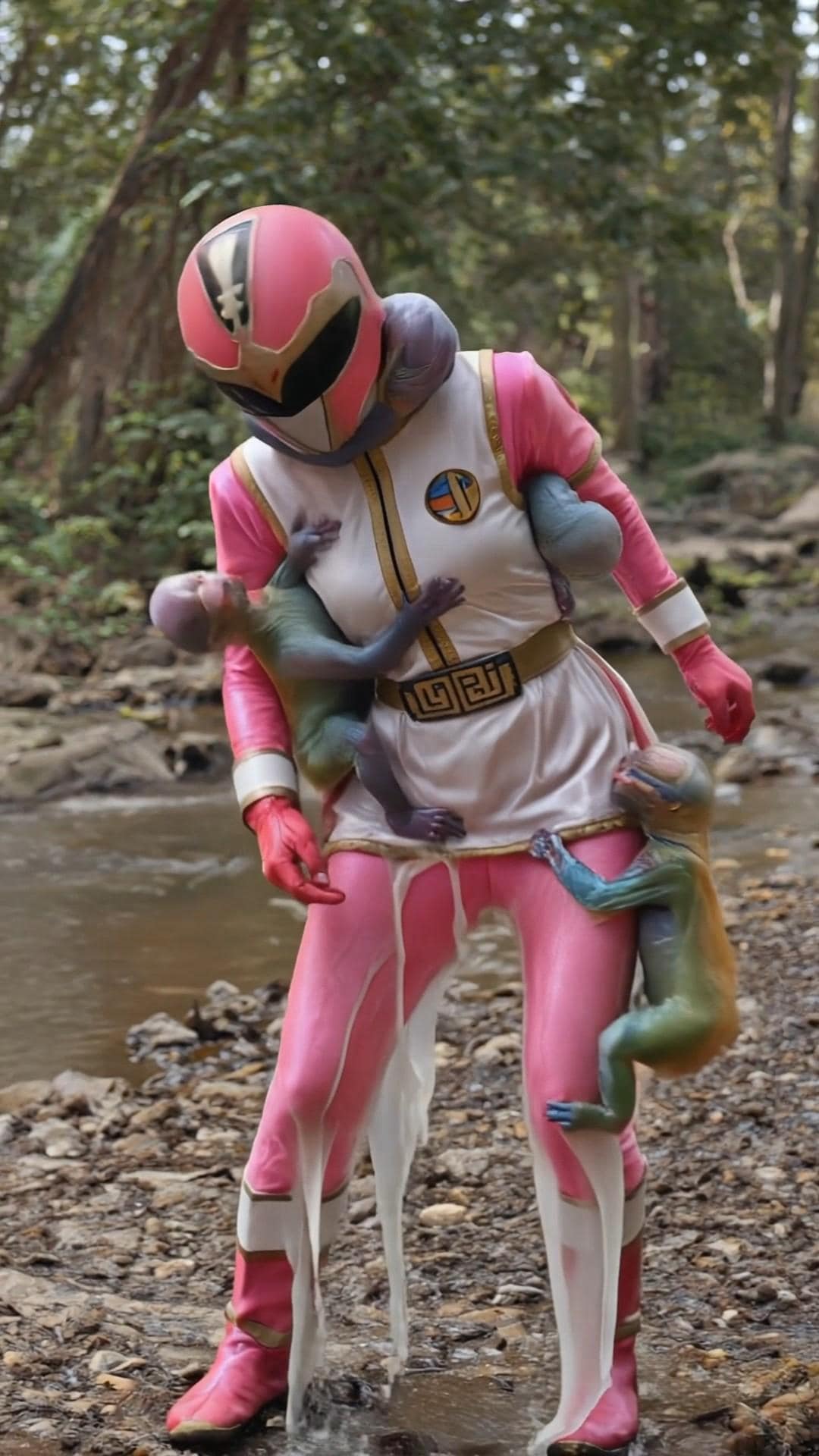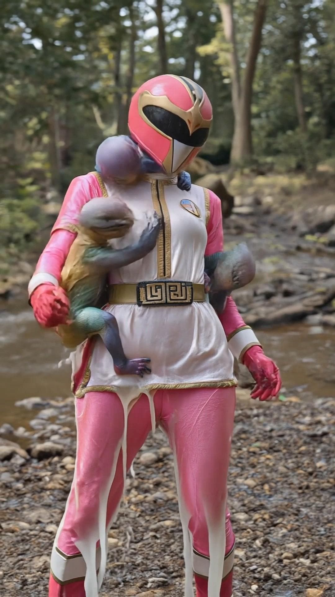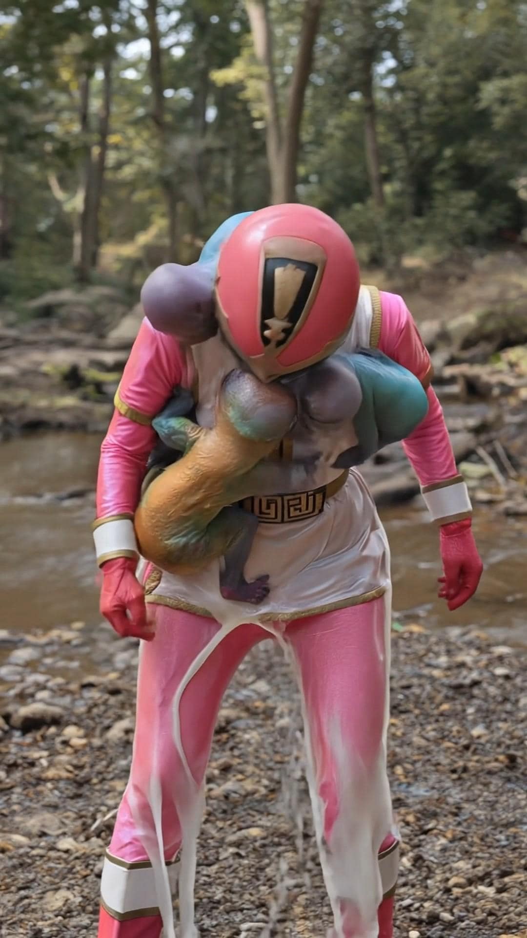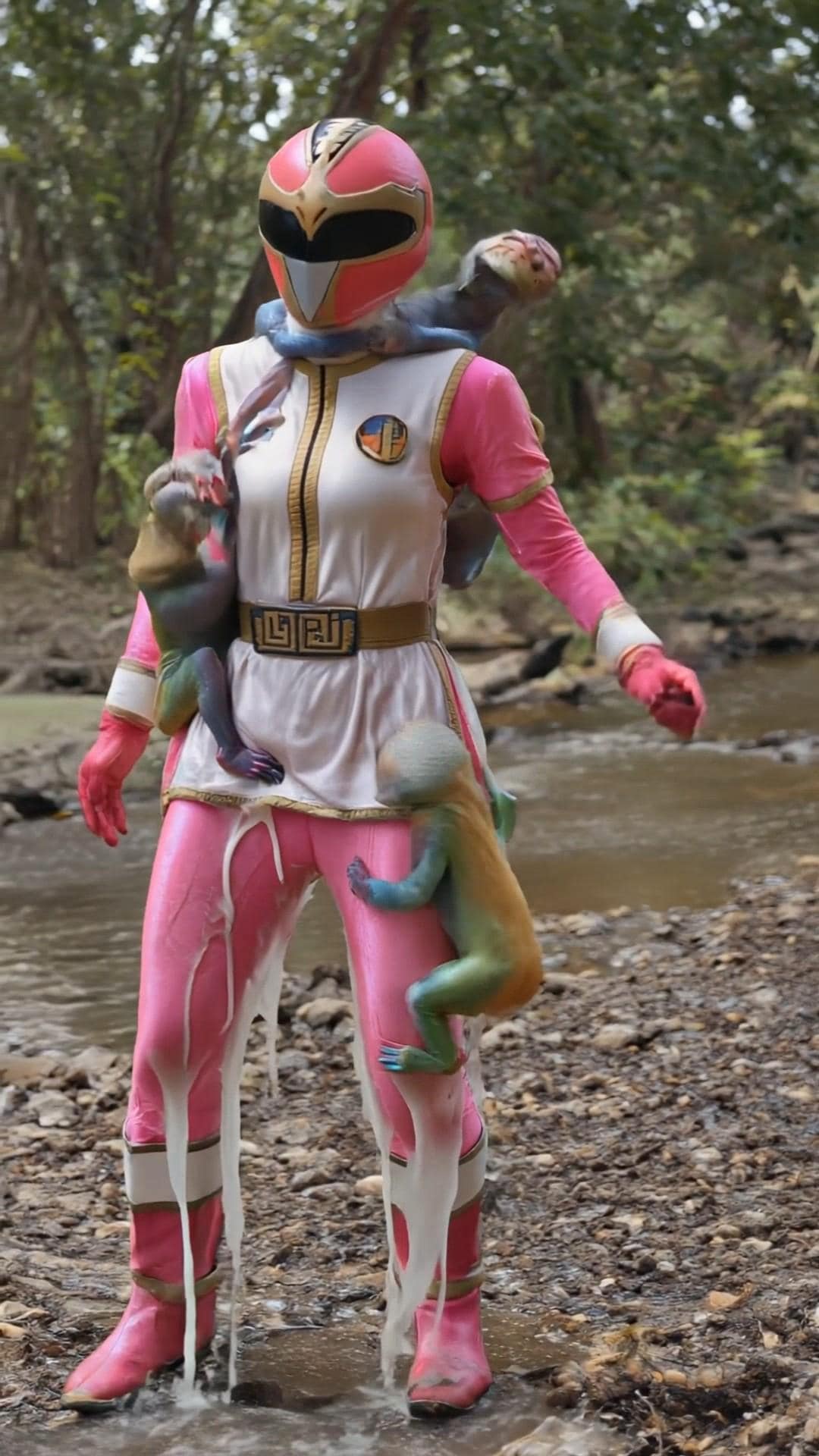 子猿のような小さいモンスターが彼女に纏わりつくと、そのモンスターが分泌する粘液でビショビショになる