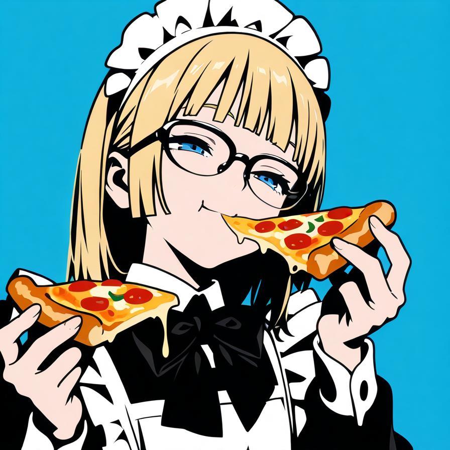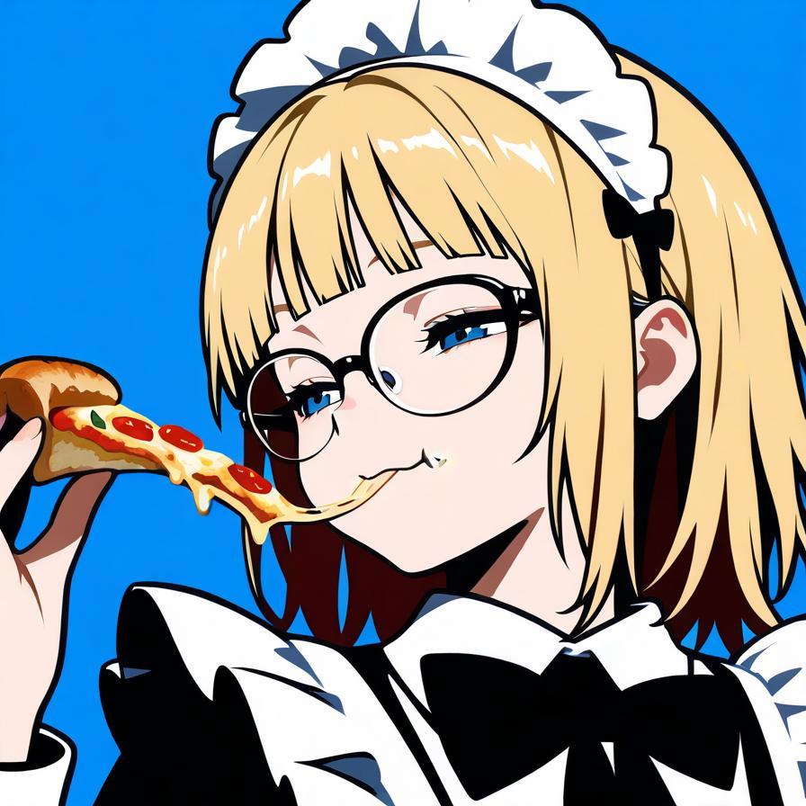 メガネかけ おピッツァもぐもぐ メイドちゃん🍕👓