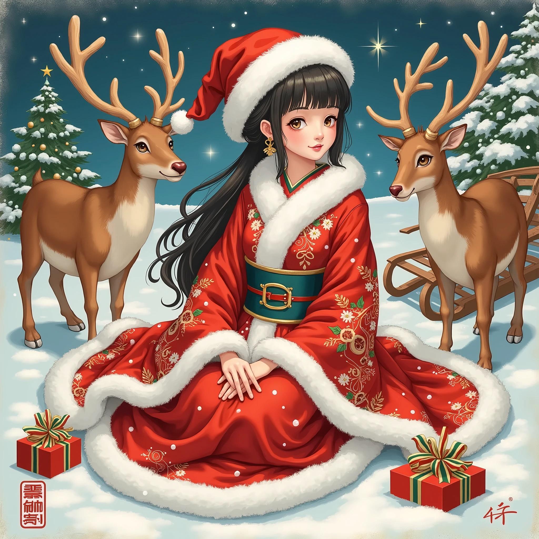 santa 〇〇 print kimono,kanzashi, 〇〇=追加したい柄