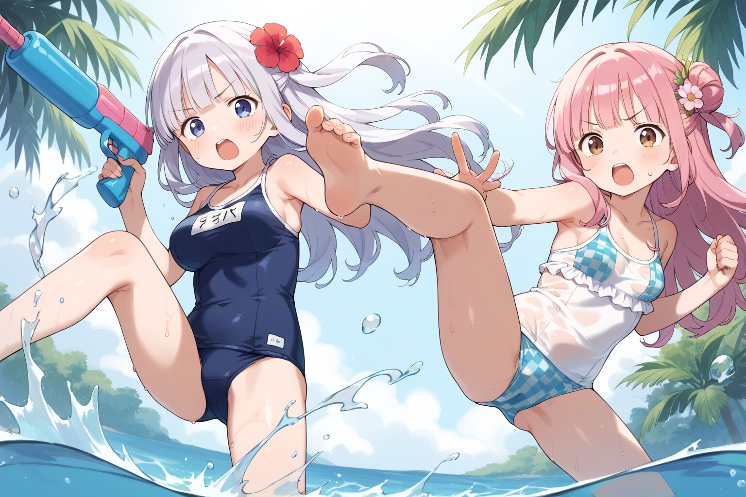 何枚かに水蹴りいれたらポーズがアグレッシブになって笑いながら生成してました
