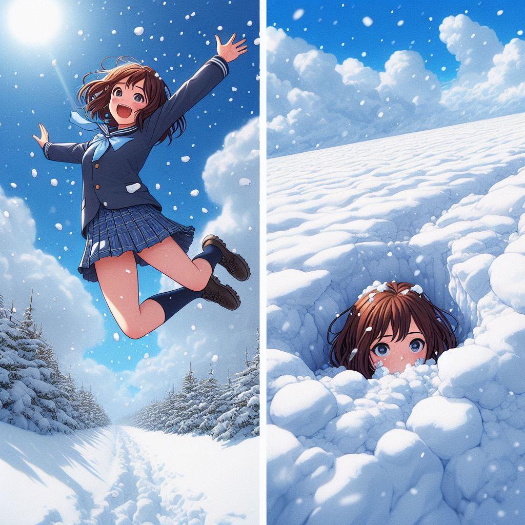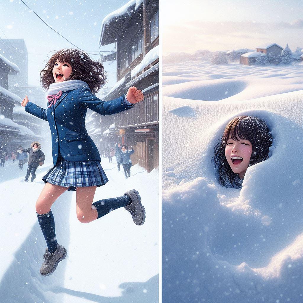 雪が降ったばかりの一面の新雪。飛び込みたくなりますよね。そして、埋まる。